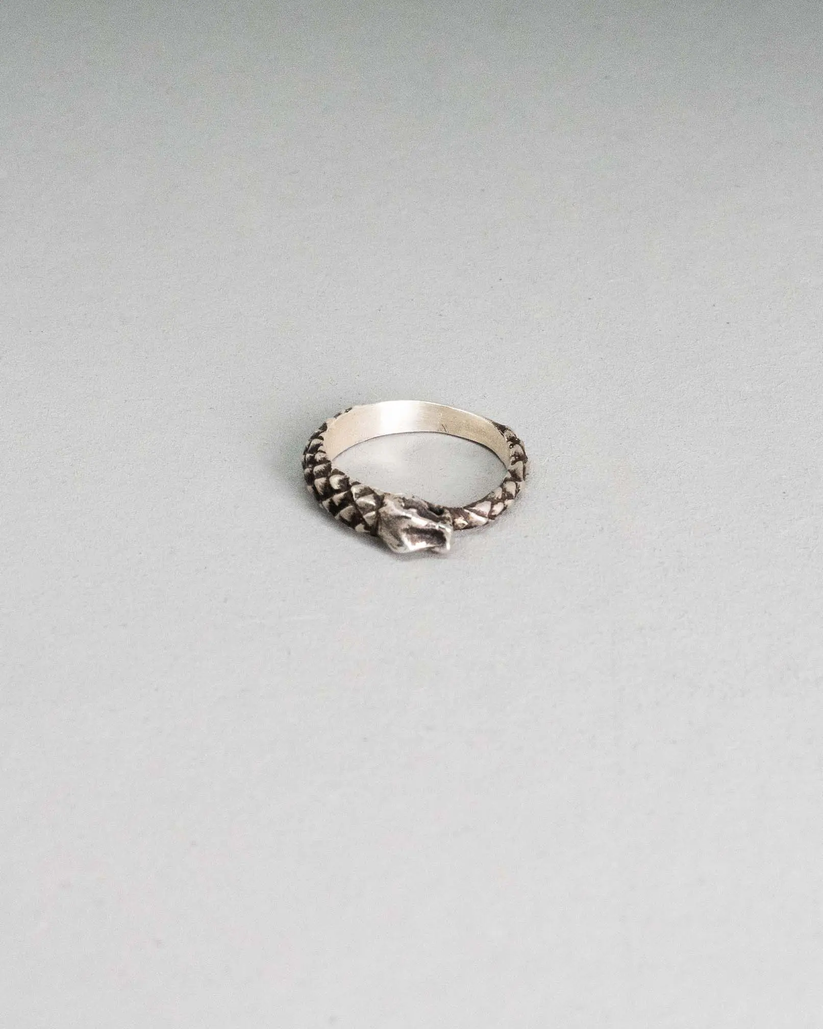 Anillo serpiente modelado a mano en cera, fundido en plata 925.