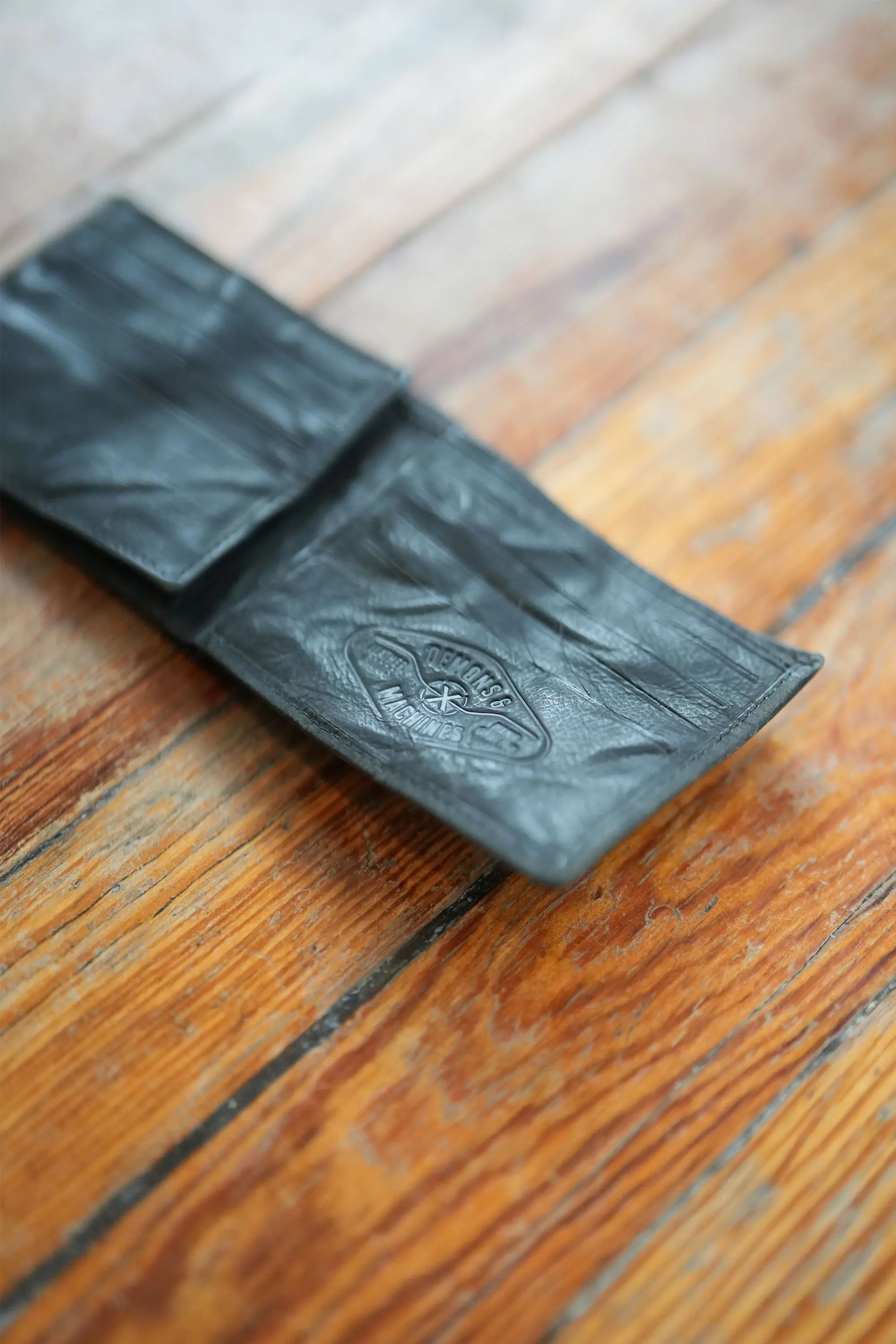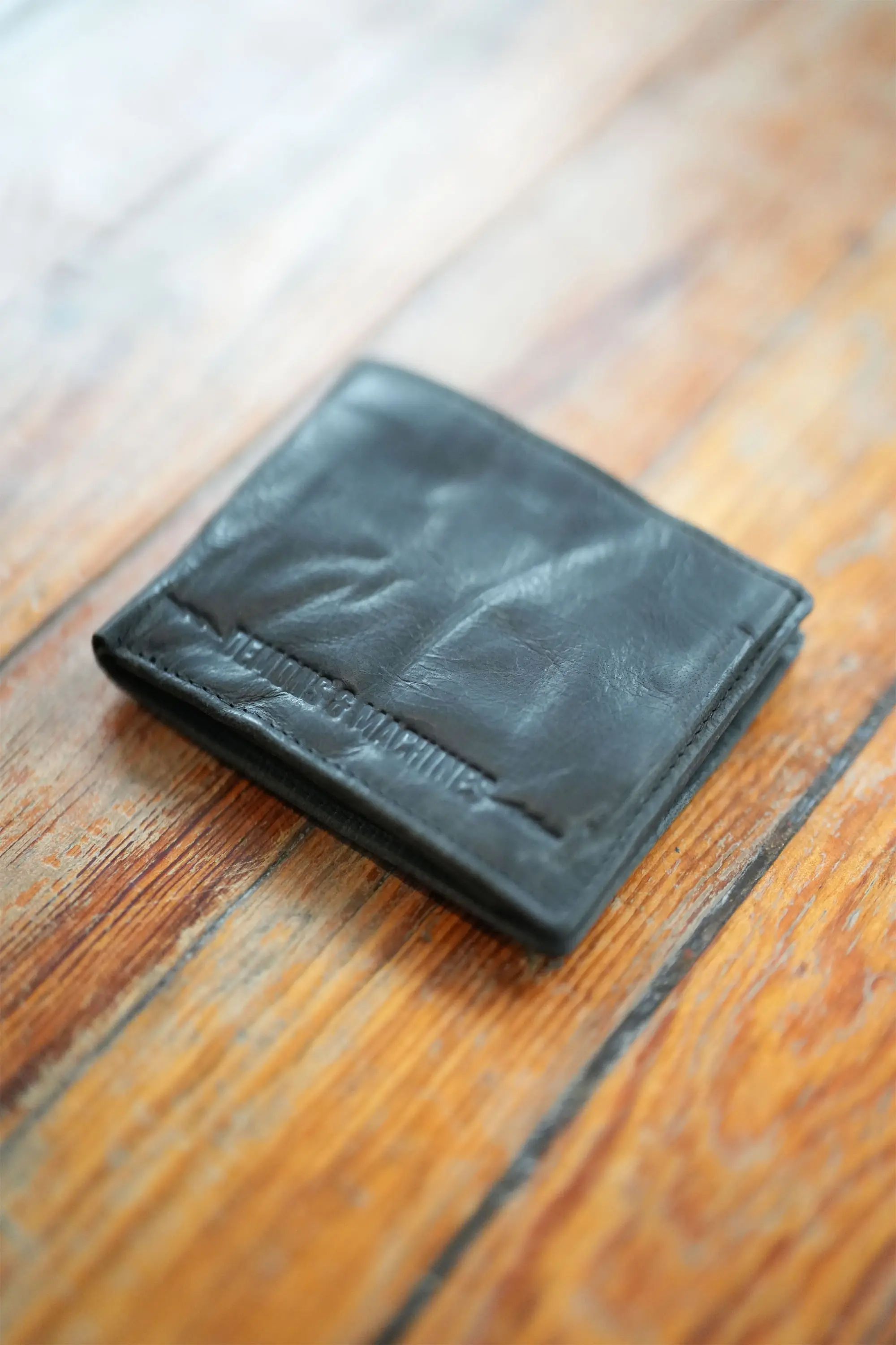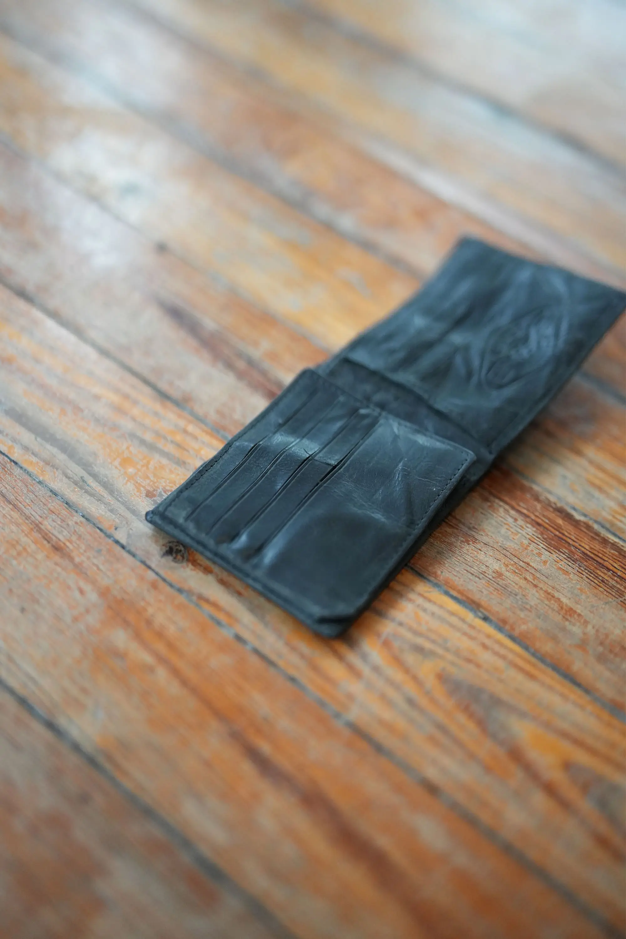 Descripción en español: Billetera triple fabricada en cuero vacuno con proceso vintage. Tiene divisiones internas para tarjetas y billetes. Grabado de marca en bajo relieve tanto en interno como en externo.
