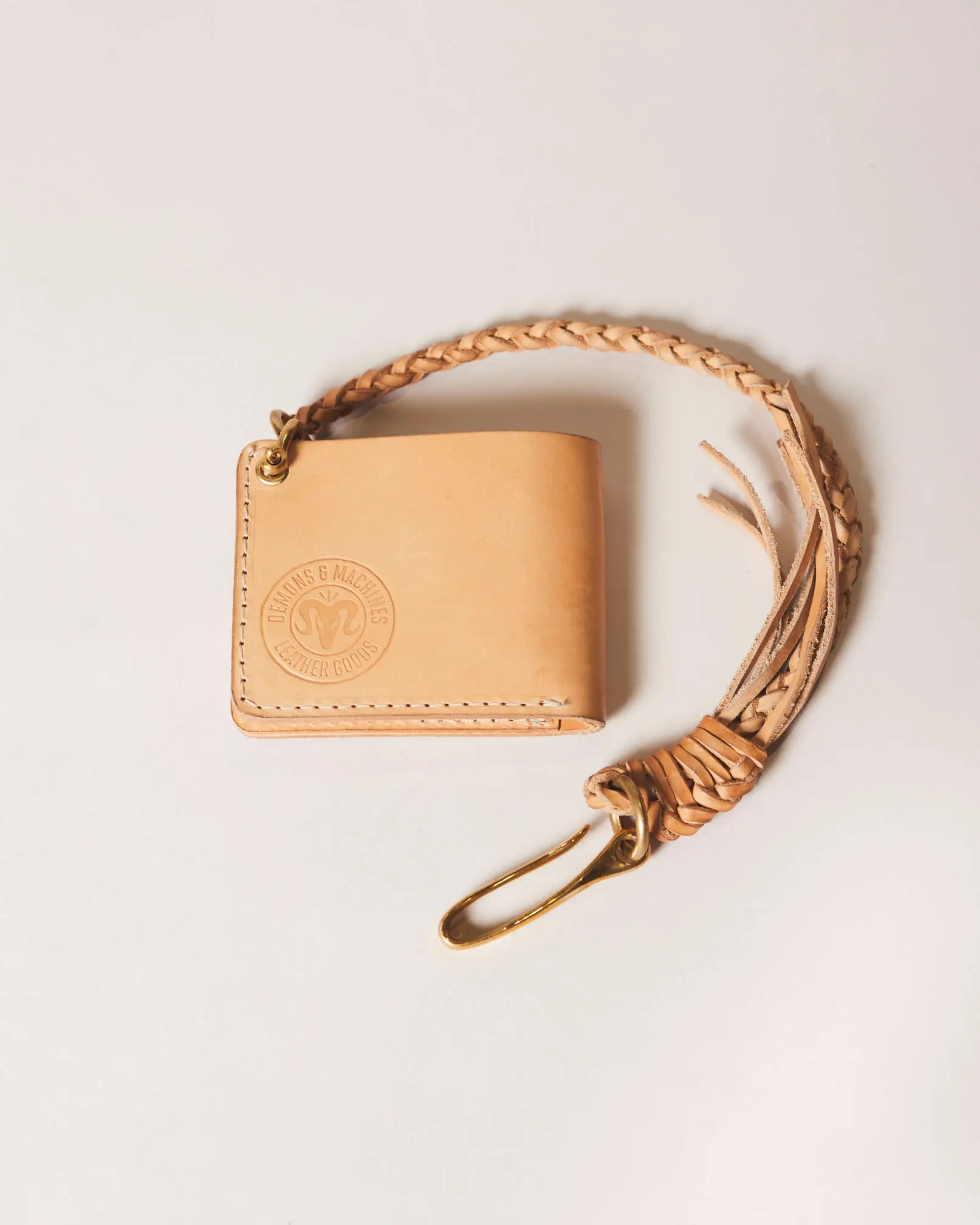 Billetera de cuero natural confeccionada artesanalmente. Capacidad para 5 tarjetas. Remaches de cobre.