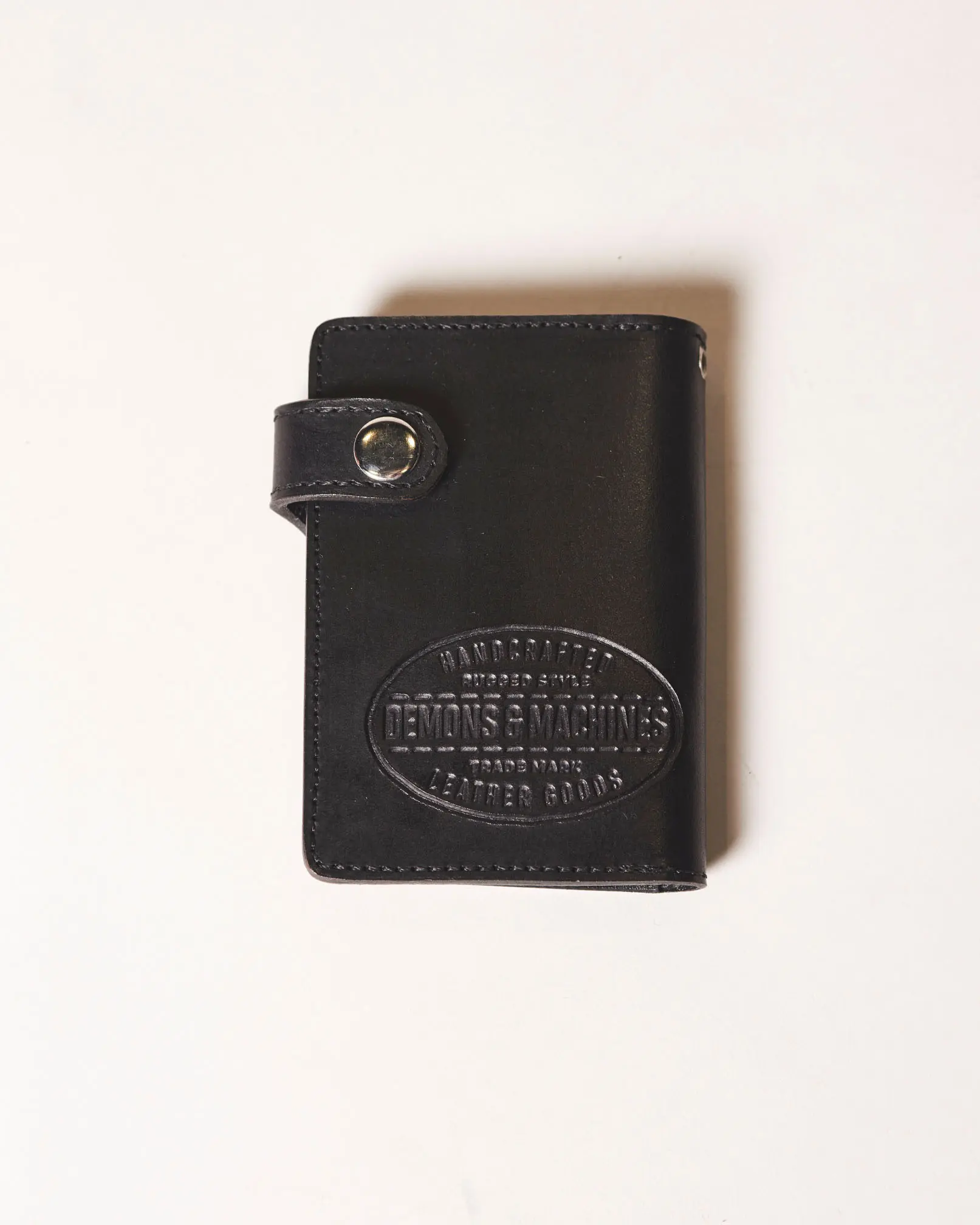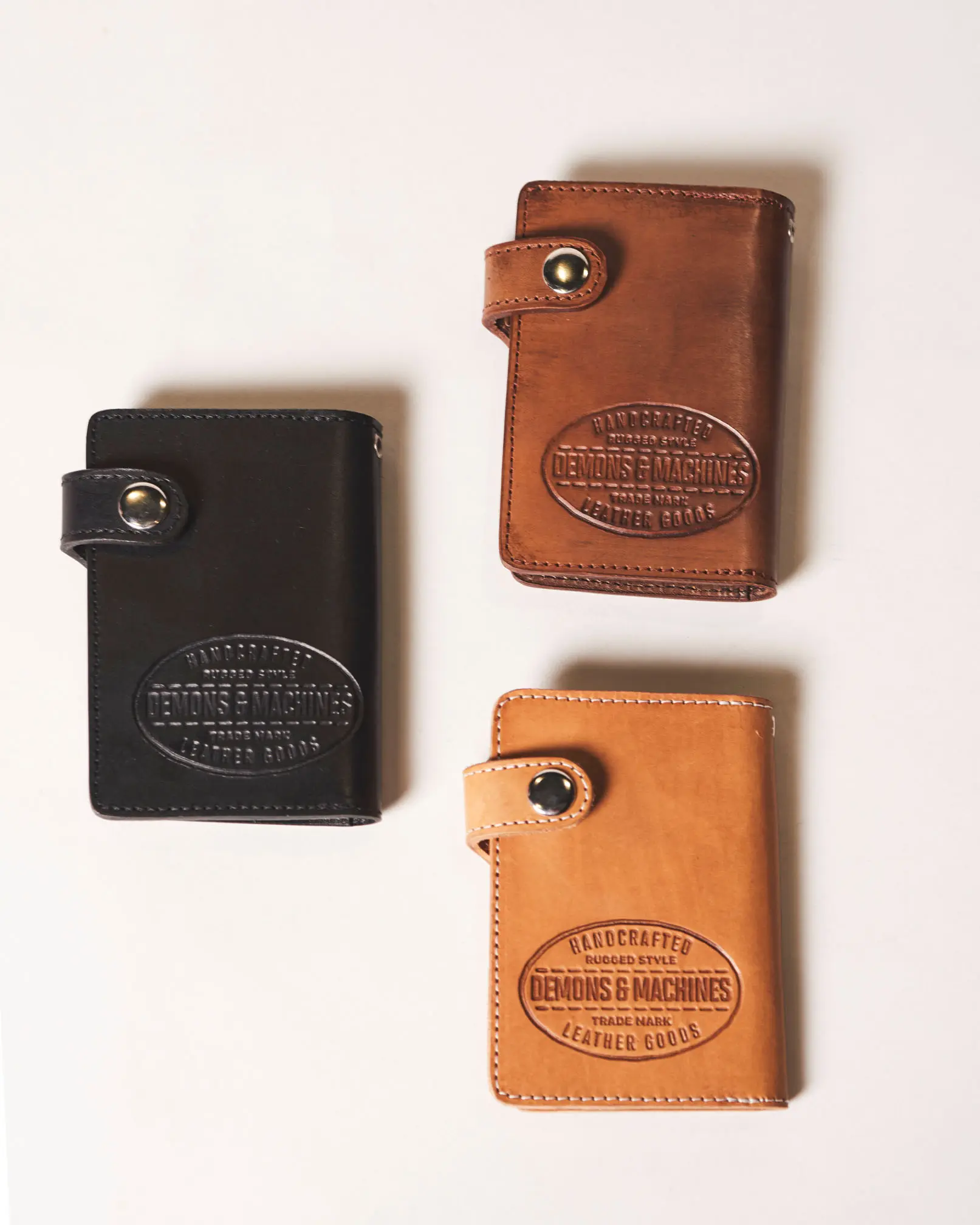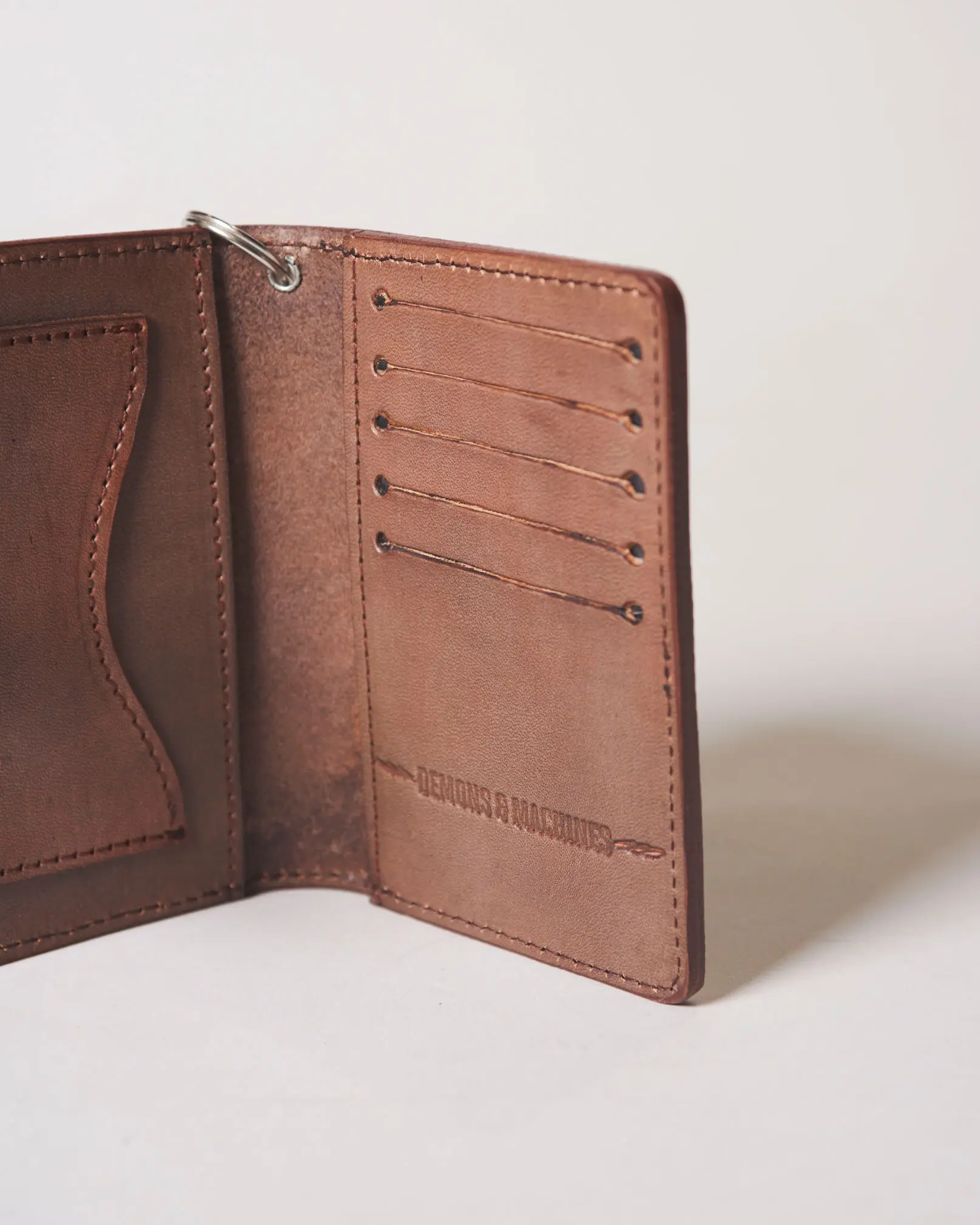Billetera de cuero vacuno con compartimentos para billetes y tarjetas. Cuenta con cadena de aluminio. Cada billetera se realiza a mano.