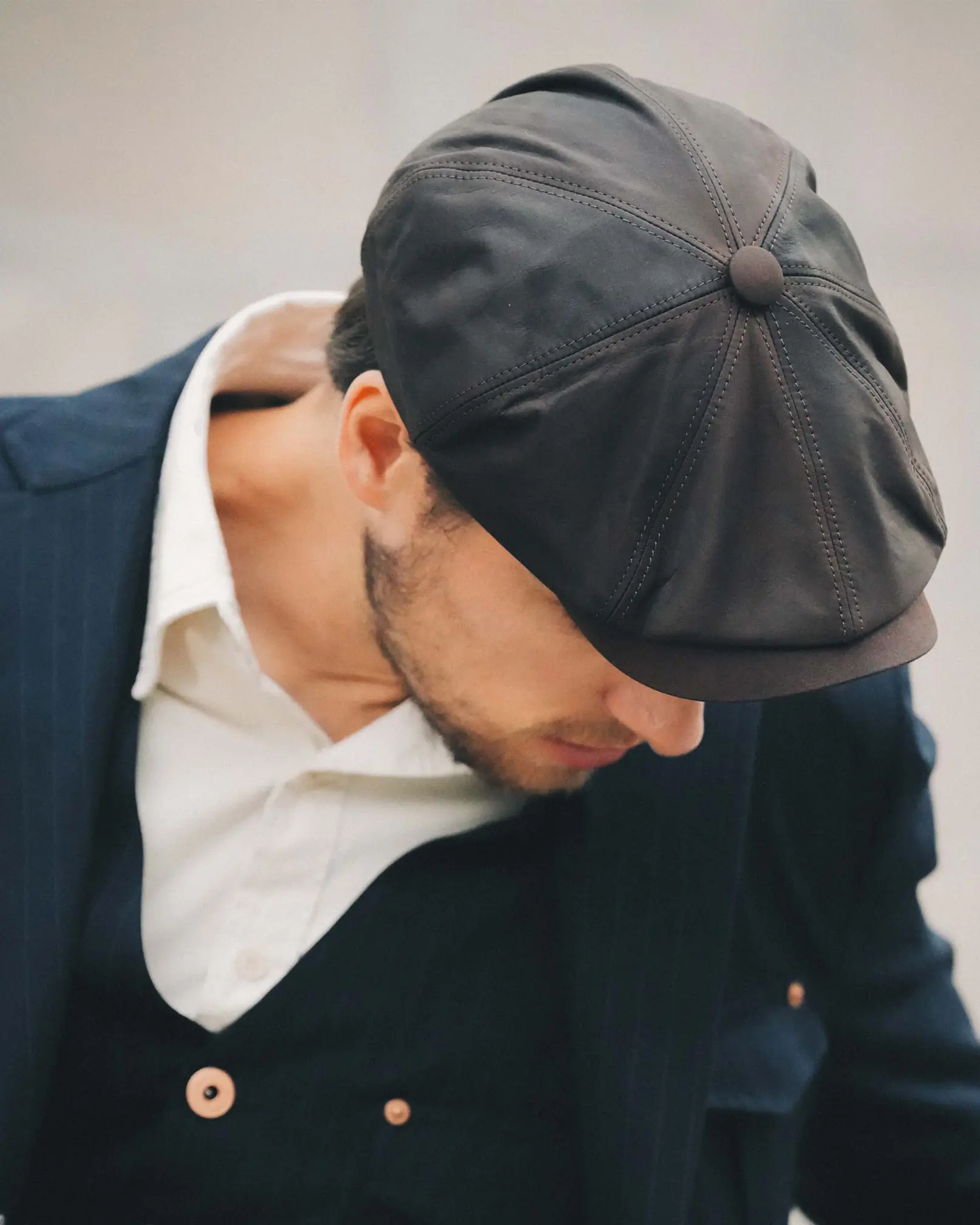 Boina confeccionada en cuero vacuno engrasado. Recortes pisados con pespunte de ambos lados. Terminaciones internas: forrería de algodón y cinta gross.100% Cuero Vacuno