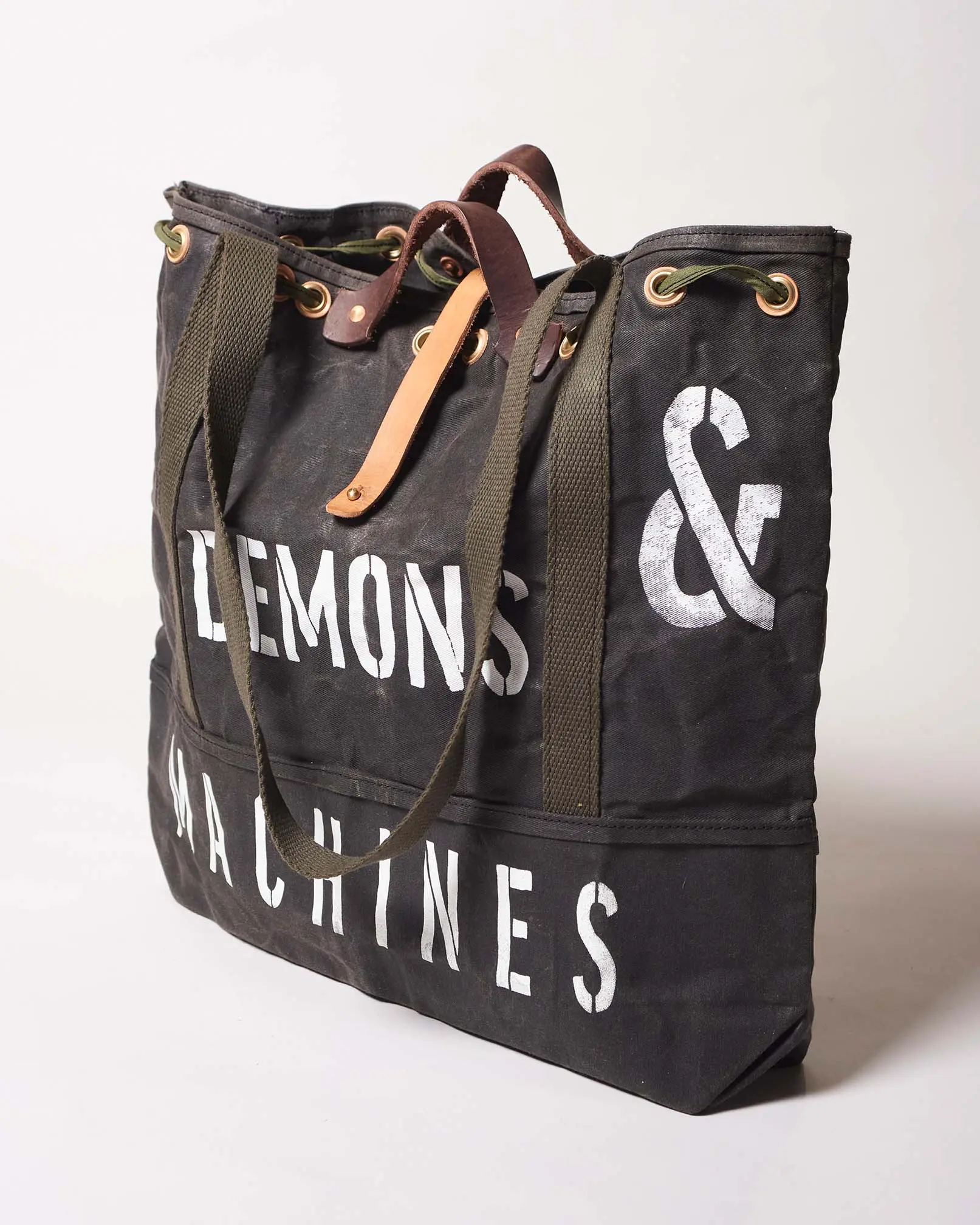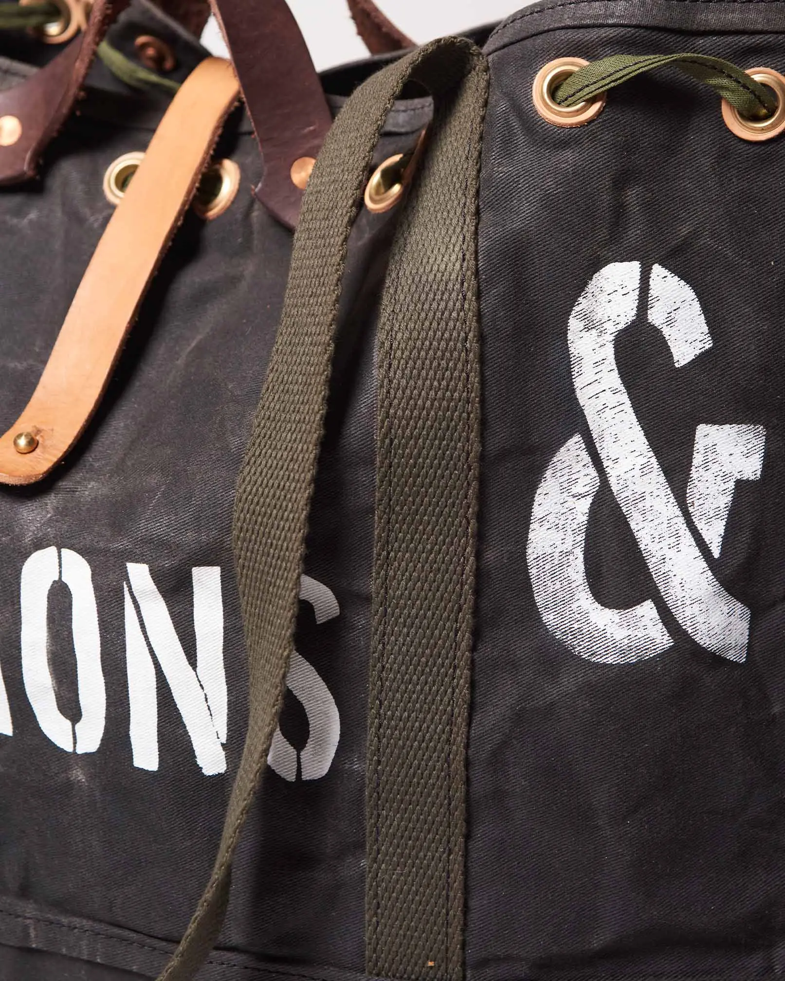 Bolso estilo militar de gabardina encerado artesanalmente logrando impermeabilizar el producto y hacerlo repelente al agua.