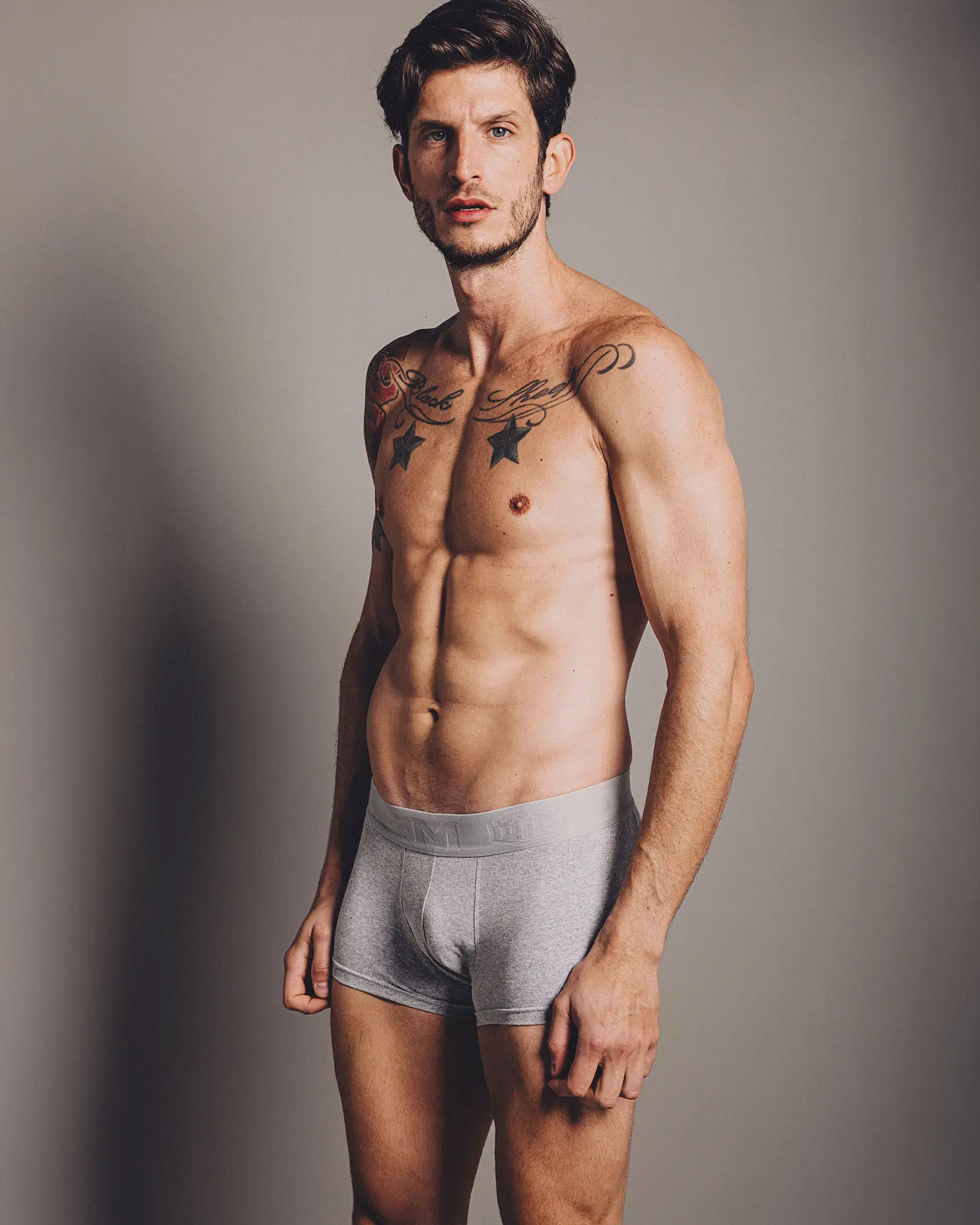 Boxer corto confeccionado en algodón elastizado. Con el tacto único que aporta el algodón y un buen porcentaje de elastano, se adapta al cuerpo ofreciendo máxima comodidad sin que se adhiera. Tiene doble capa de tela al frente para lograr una sujeción perfecta, recortes funcionales al calce, costuras sin volumen y elástico marcario al tono, de mano afelpada y calidad superior, que se ajusta a la cintura sin marcar ni perder la forma.