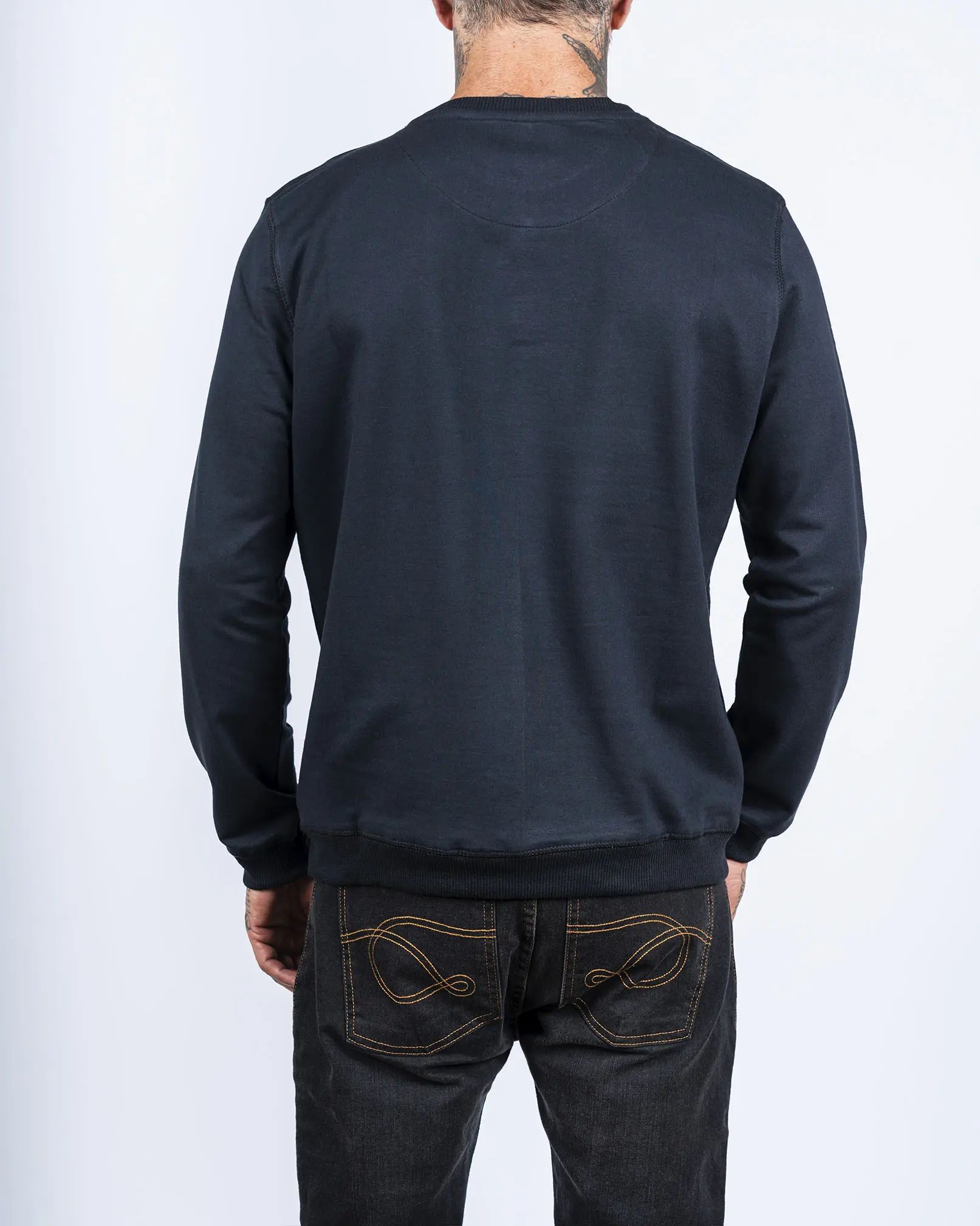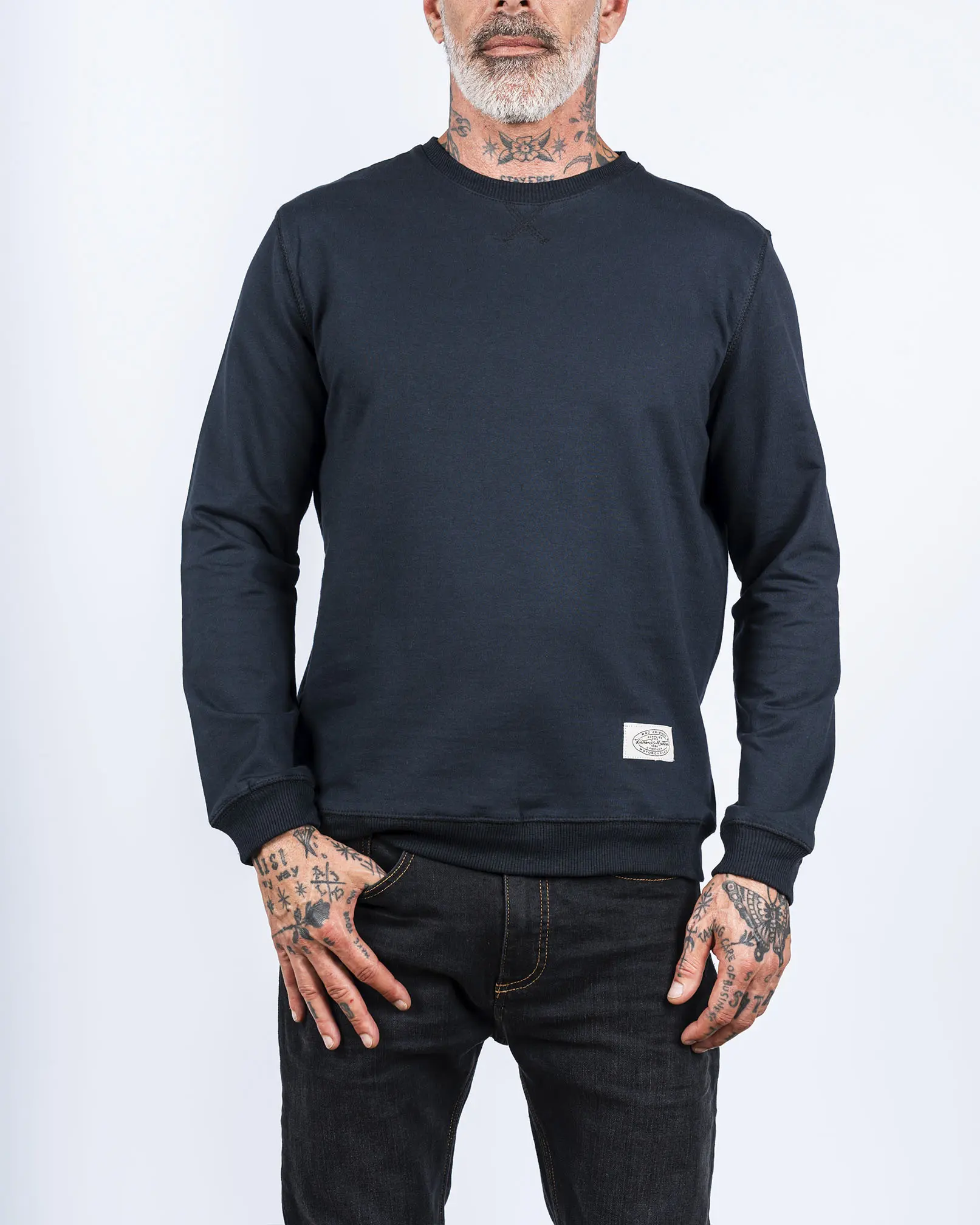 Buzo liviano confeccionado en rústico con puños en ribb al tono. Cuello redondo y triángulo con bordador.