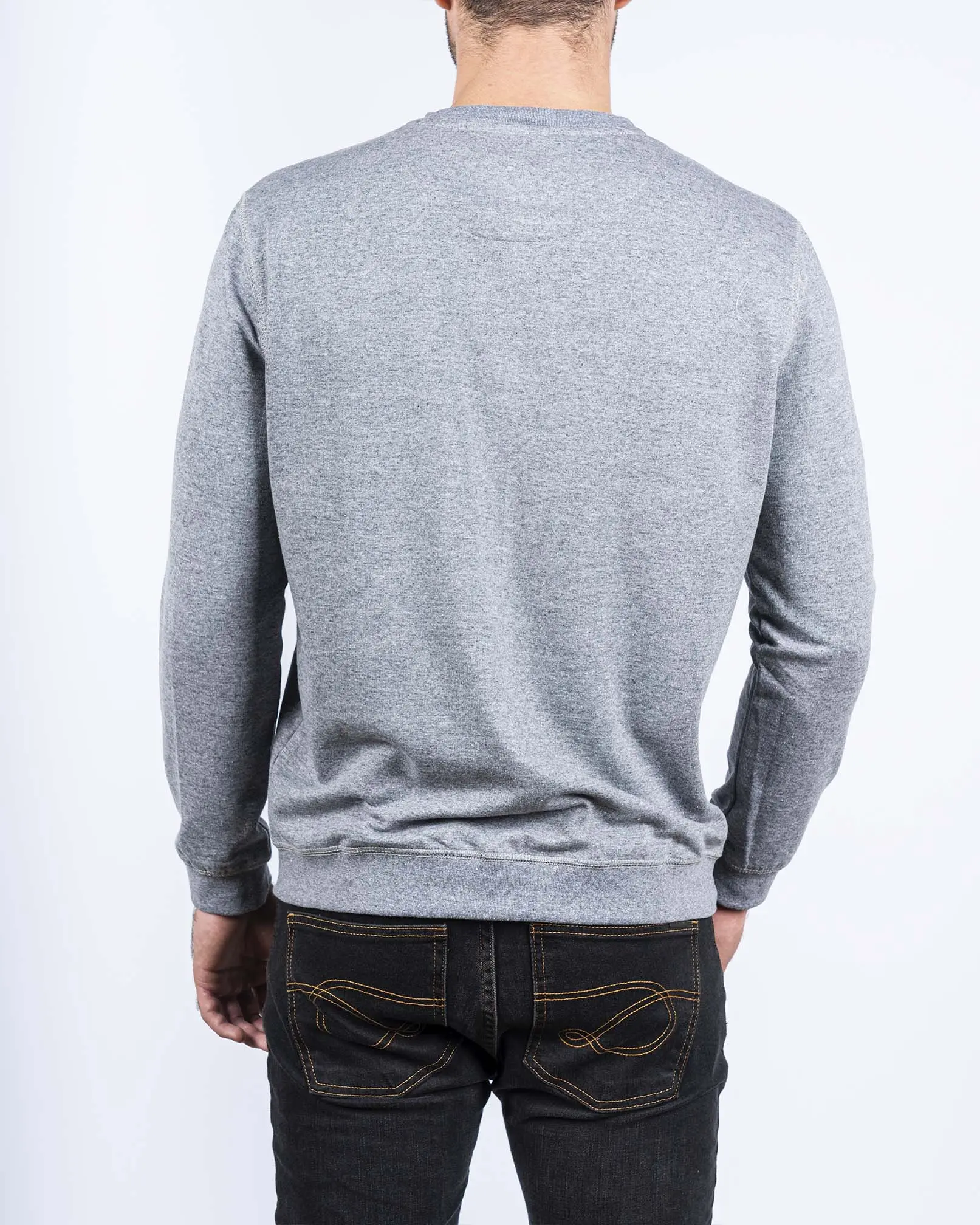 Buzo liviano confeccionado en rústico con puños en ribb al tono. Cuello redondo y triángulo con bordador.