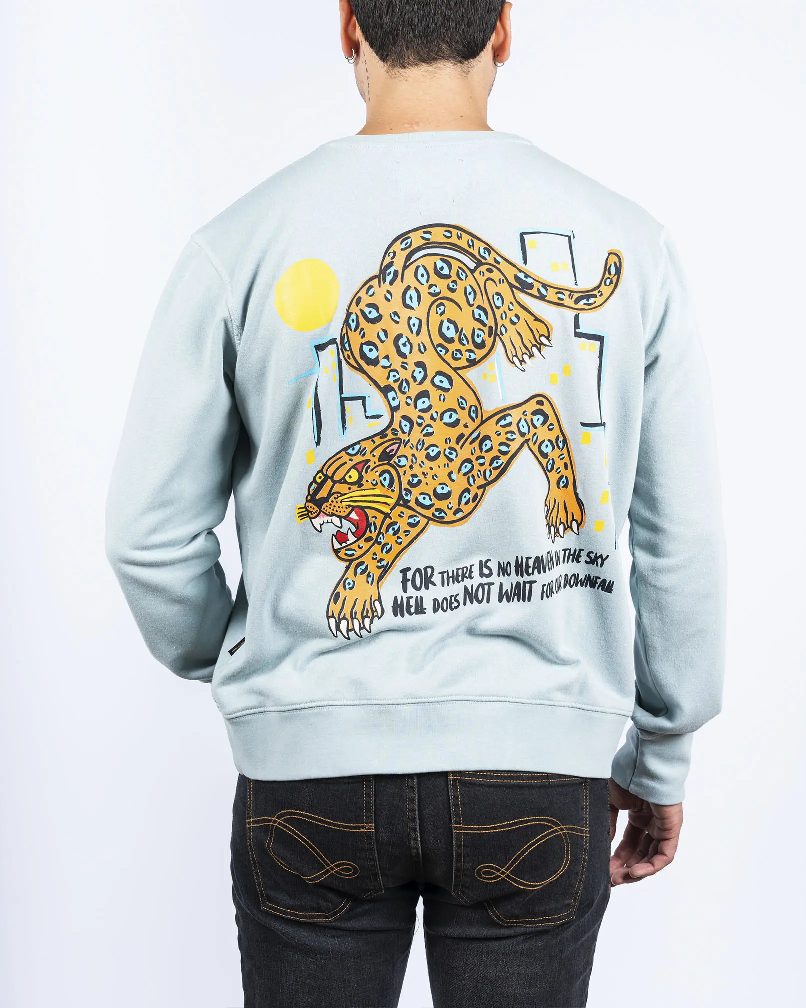 Buzo confeccionado en rústico con puños en ribb al tono. Cuello redondo y triángulo con bordador. Estampa de marca al frente. Estampa en espalda ilustrada por el artista argentino Luis Mayer.