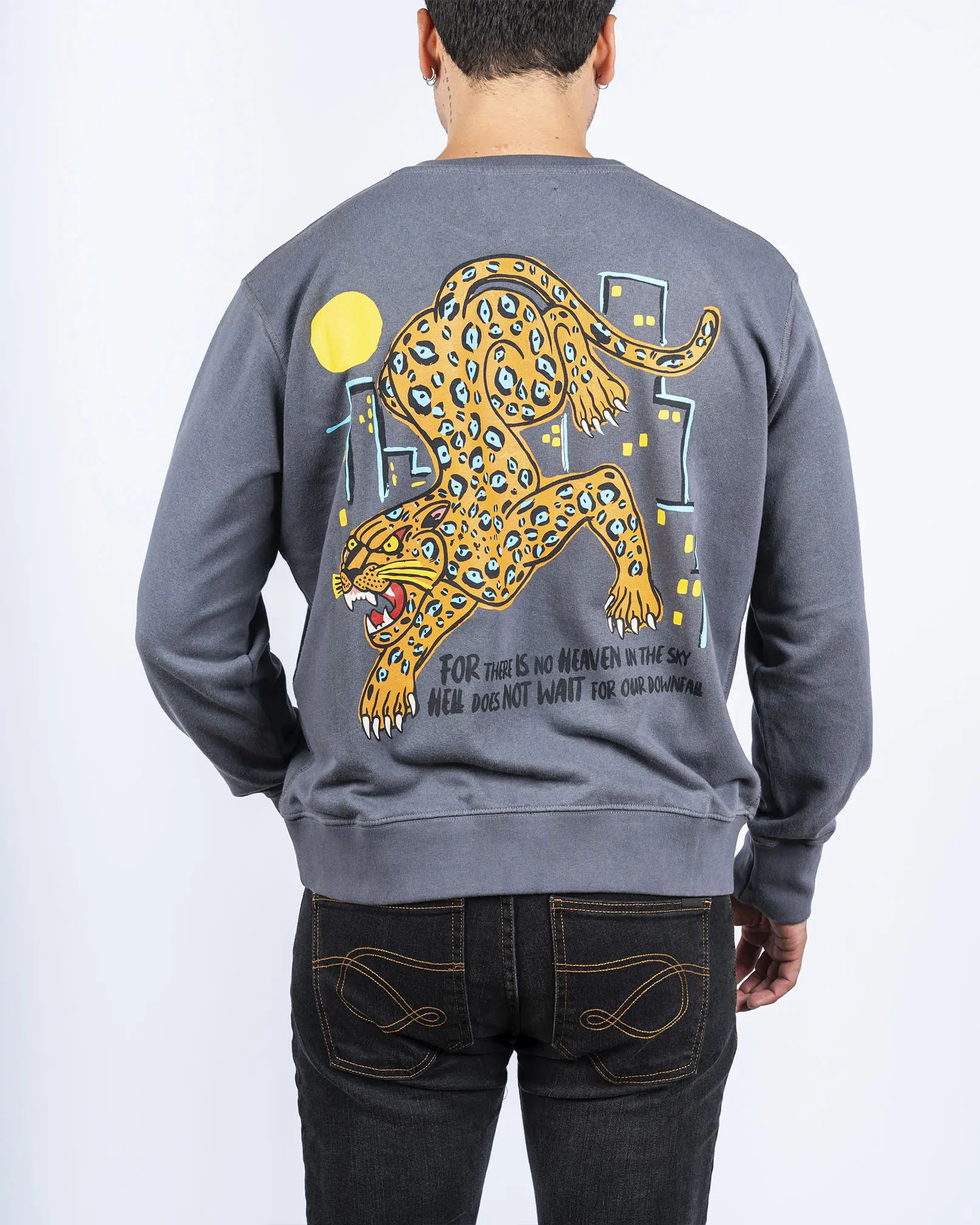 Buzo confeccionado en rústico con puños en ribb al tono. Cuello redondo y triángulo con bordador. Estampa de marca al frente. Estampa en espalda ilustrada por el artista argentino Luis Mayer.