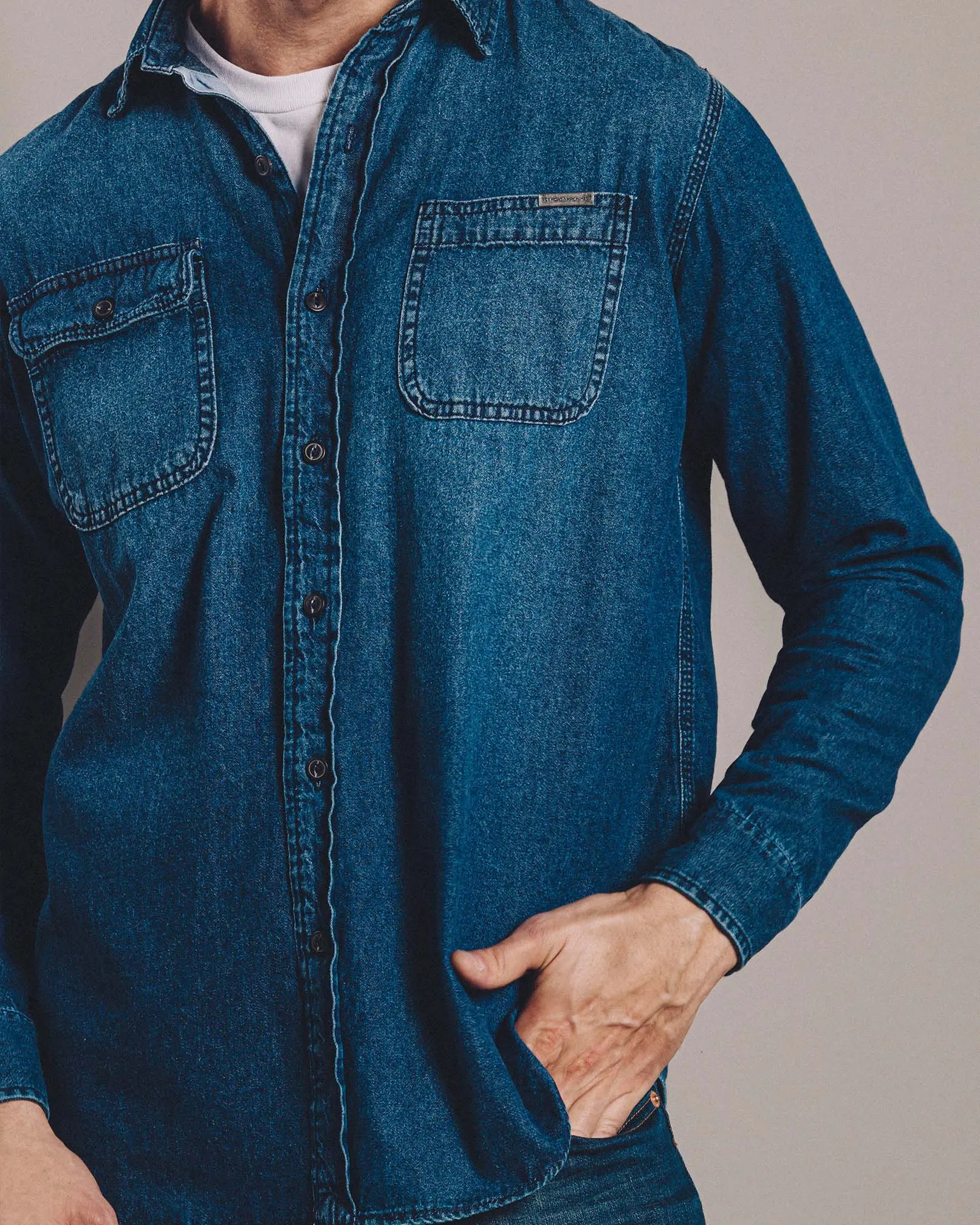 Confeccionada en jean camisero de 7 onzas y presentada en un lavado clásico y atemporal, Morris es nuestra camisa de calce regular ideal para todos los días. Con bolsillos plaqué diferenciados entre ellos y detalles de botones pasta ojo de perdiz y costura triple para una terminación bien reforzada.