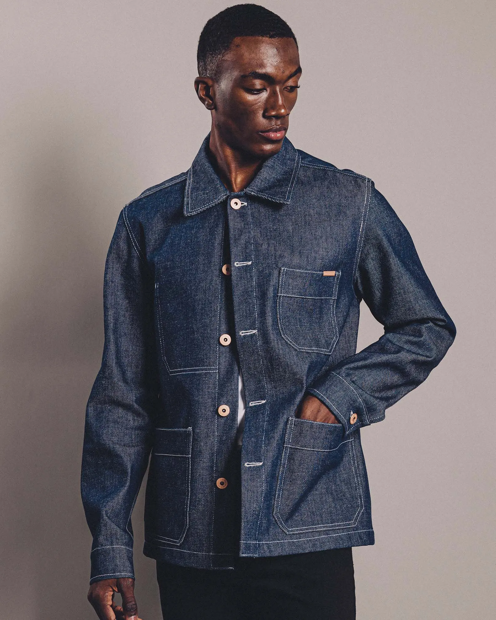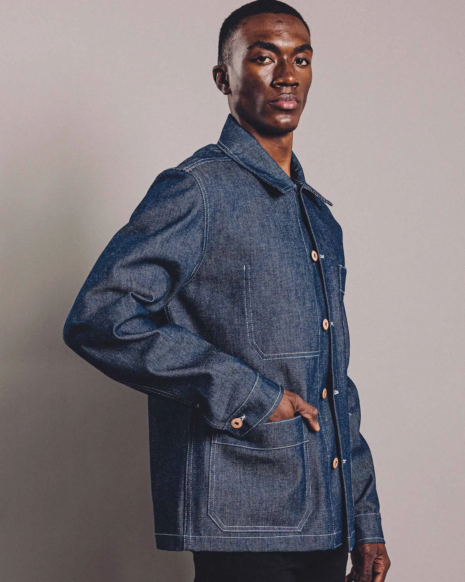 SENDAI es nuestro camisaco de inspiración japonesa, confeccionado en denim crudo de 14 onzas, tela de buen peso con durabilidad, estructura y un look único. Sus costuras en hilo crudo refuerzan la impronta vintage. Además de bolsillos plaqué superiores e inferiores, cuenta con bolsillo interno. Botones metálicos en baño cobre opaco con ojales redondos. Tanto el tono como el tacto de la prenda se deben a su terminación raw (cruda) donde la tela se usa al natural y sin lavado. La tela presenta sellos en su cara interna que garantizan la originalidad y calidad de la misma.