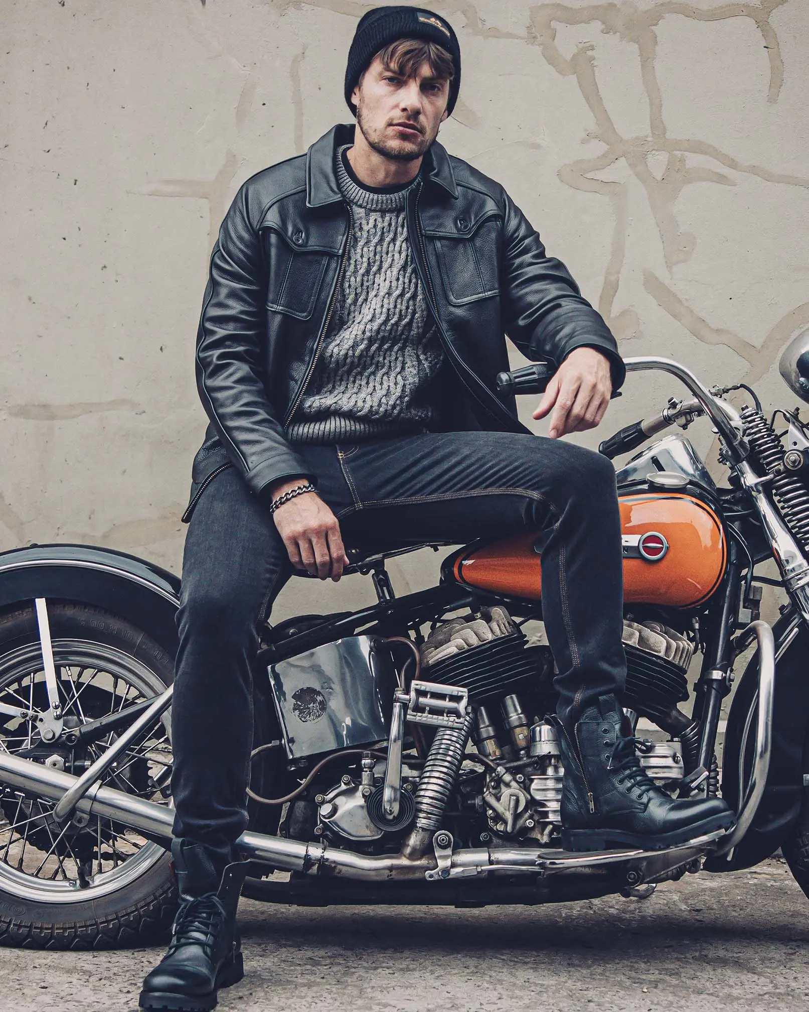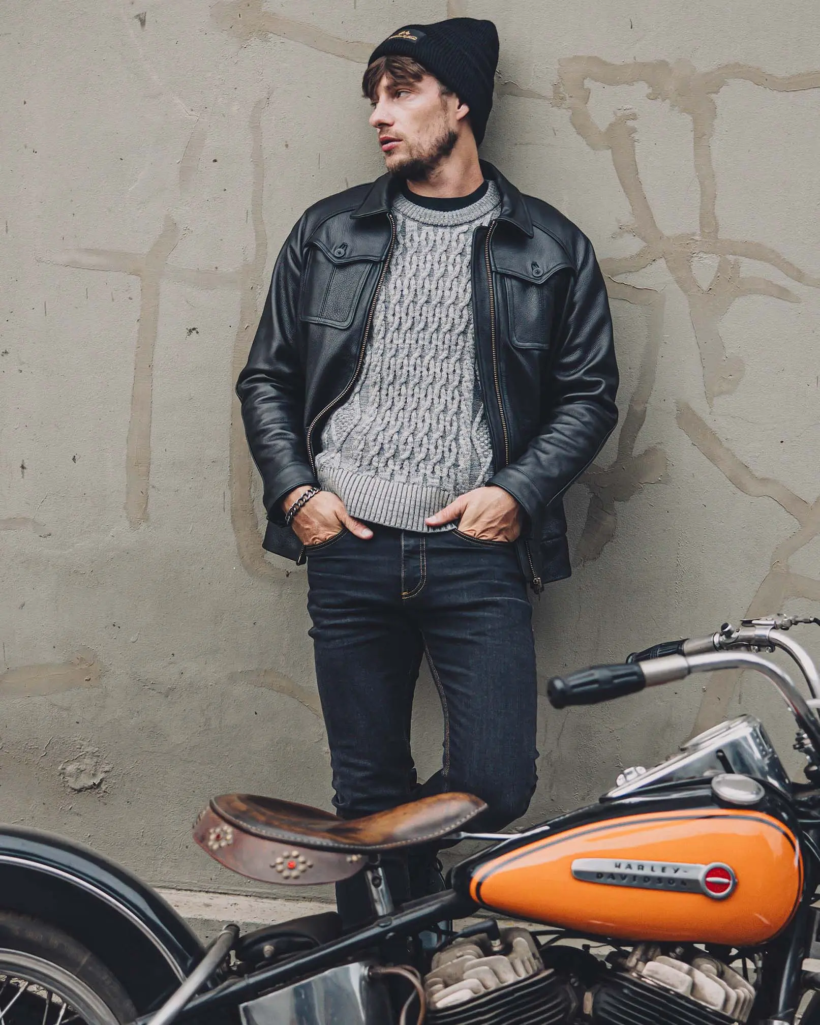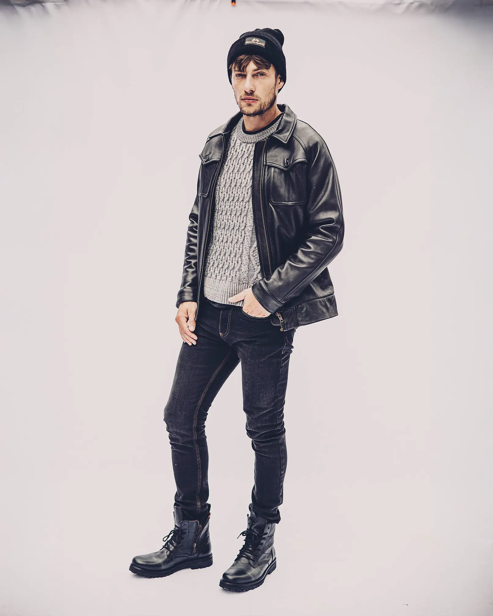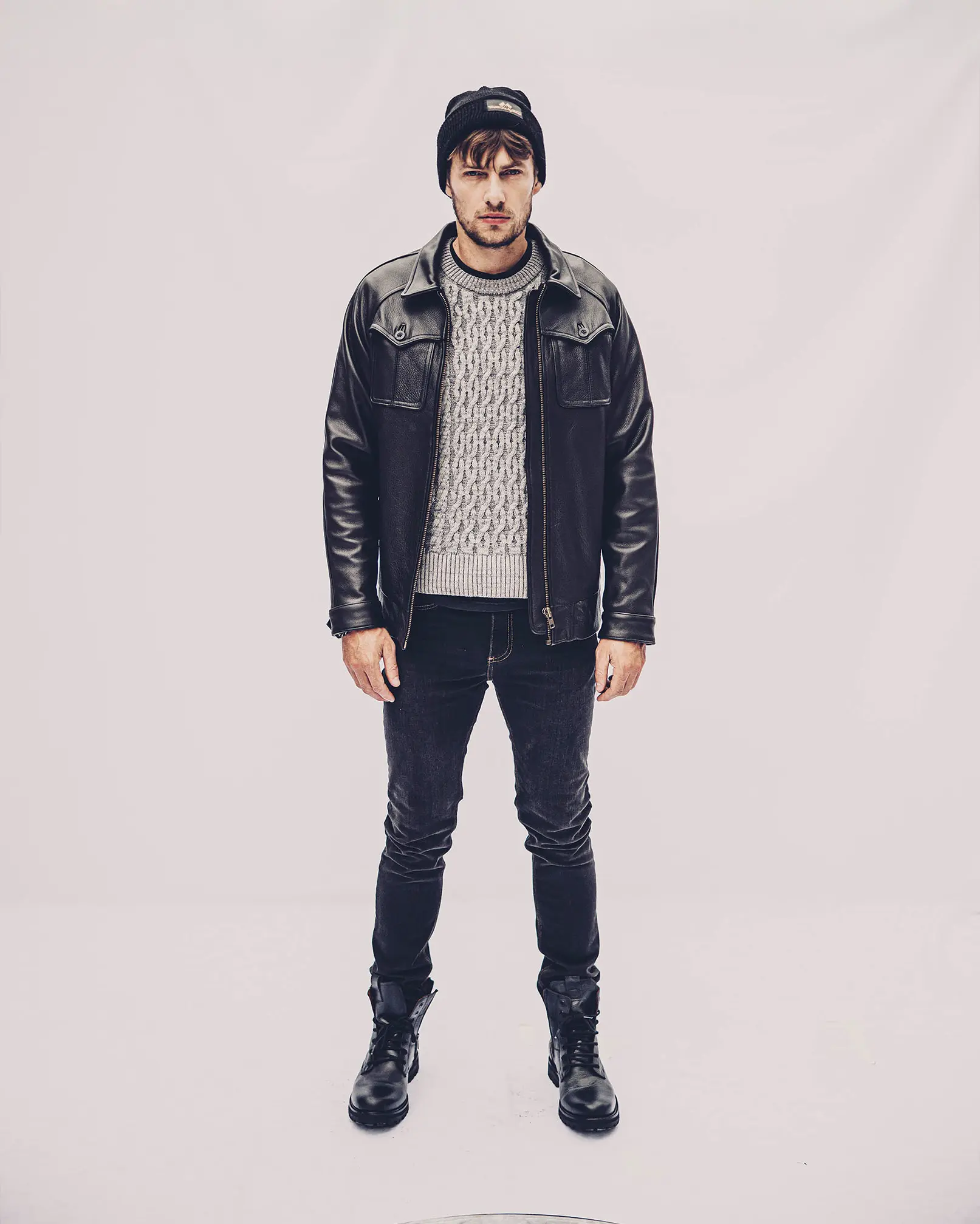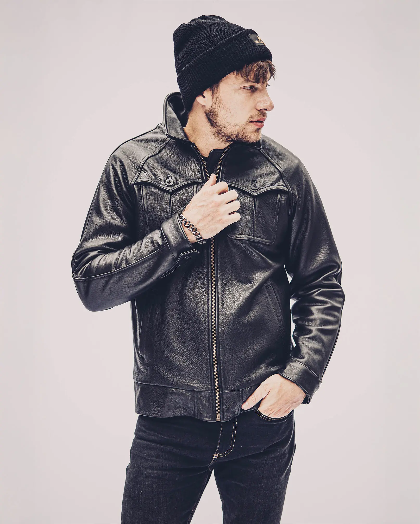 Campera confeccionada en cuero vacuno graneado. Calce regular, con cuello camisero, manga ranglan, bolsillos superiores con botones pasta al tono y ojales sastreros. Cierre delantero en bronce empavonado cadena 8. Puños con botón pasta y ojal sastrero. Forrería en sarga de poliéster opaco para una buena resistencia y gran deslizamiento. Estampa interna central de marca. El corte y confección de cada una de nuestras camperas de cuero se lleva a cabo de manera artesanal y personalizada. Las producciones son limitadas y las reposiciones pueden presentar diferencias por las variaciones naturales del tono de la materia prima. Cada pieza tiene un look único y perdurable en el tiempo.