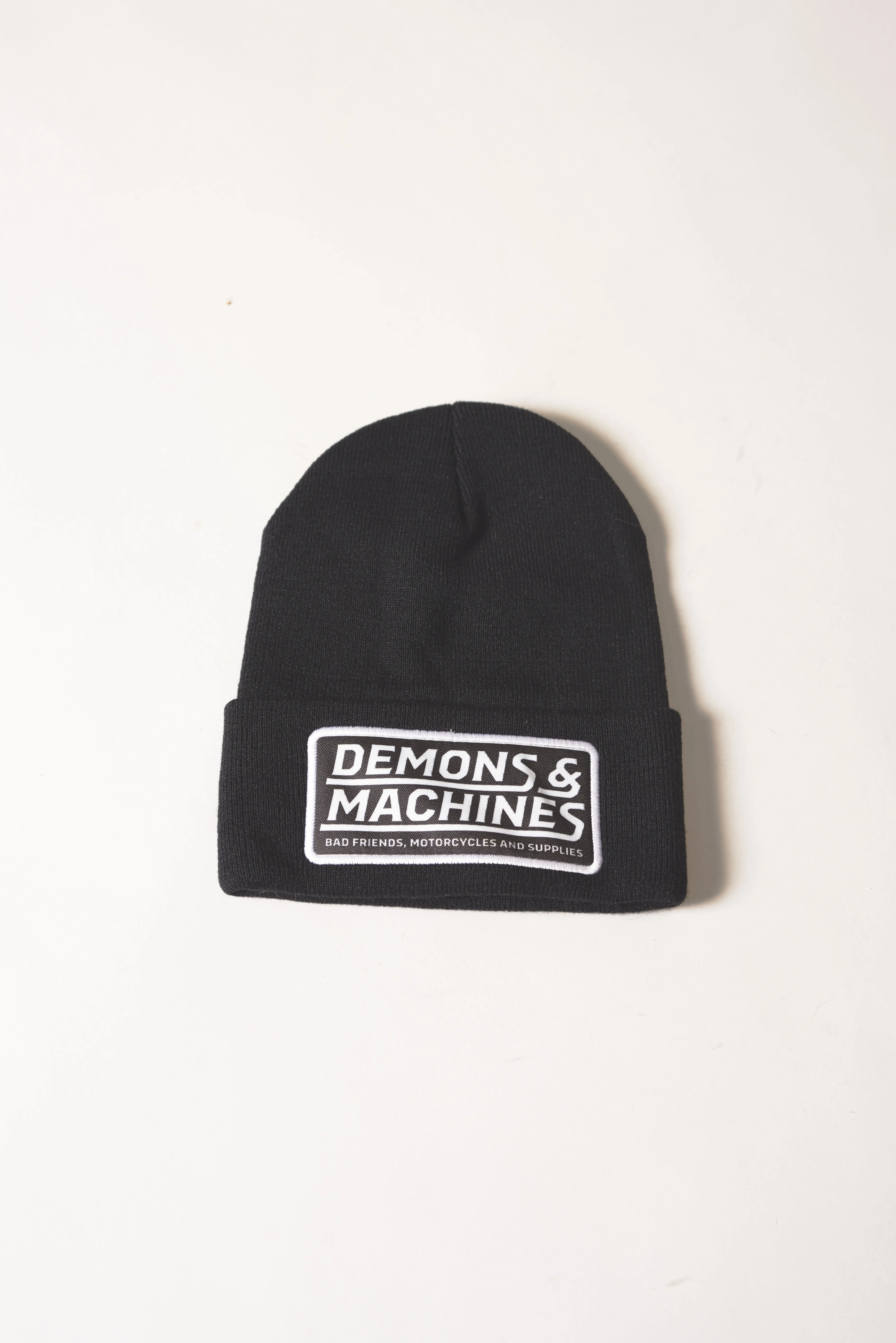 Gorro tejido 100% acrílico con parche sublimado negro y amarillo con bordado en los bordes.