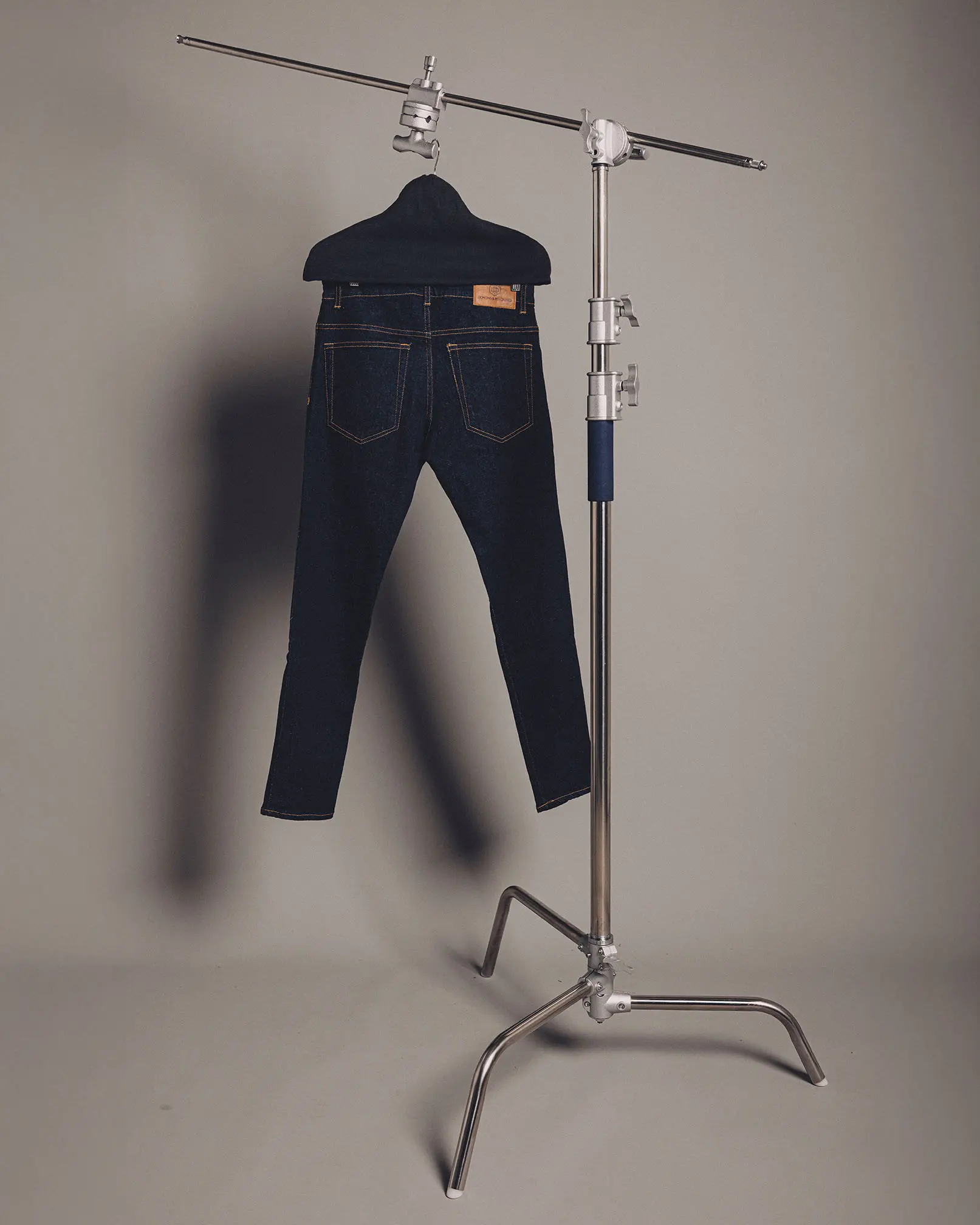 - Tiro Medio- Pierna entallada- Apertura de pierna entallada- Super Stretch Denim 10 Onzas (Origen Turquía) 98% Algodón 02% Elastano- Hilo de confección ocre- Cremallera de metal- Botón & remaches plata italiana