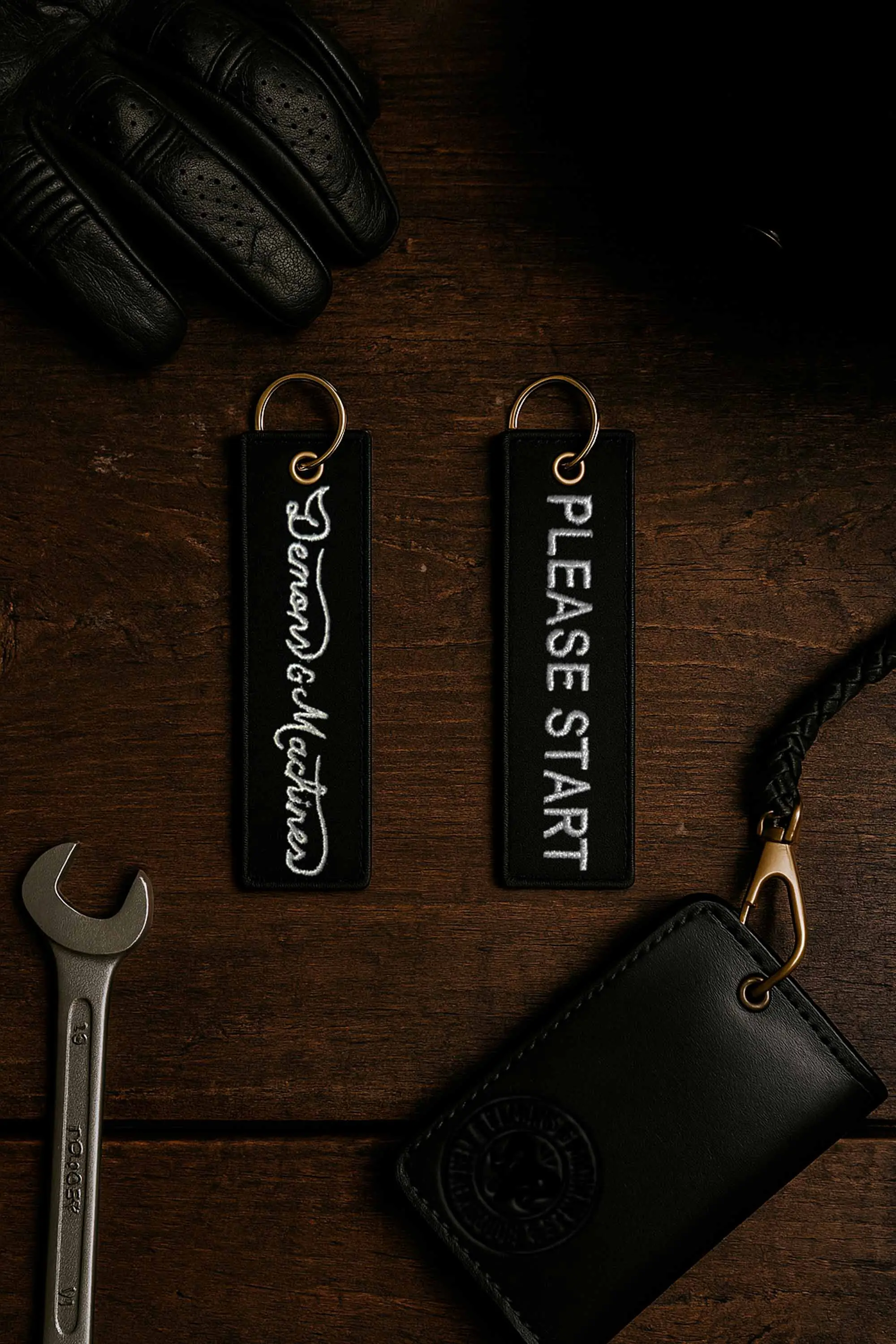 Llavero marcario confeccionado en Bull de algodón pesado. Artes bordados con hilo crudo de ambos lados y festón de terminación con hilo al tono. Ojalillo metálico + arandela sin fin 30 mm. Medidas pieza bordada: 2,7 cm (ancho) x 15 cm (Largo)