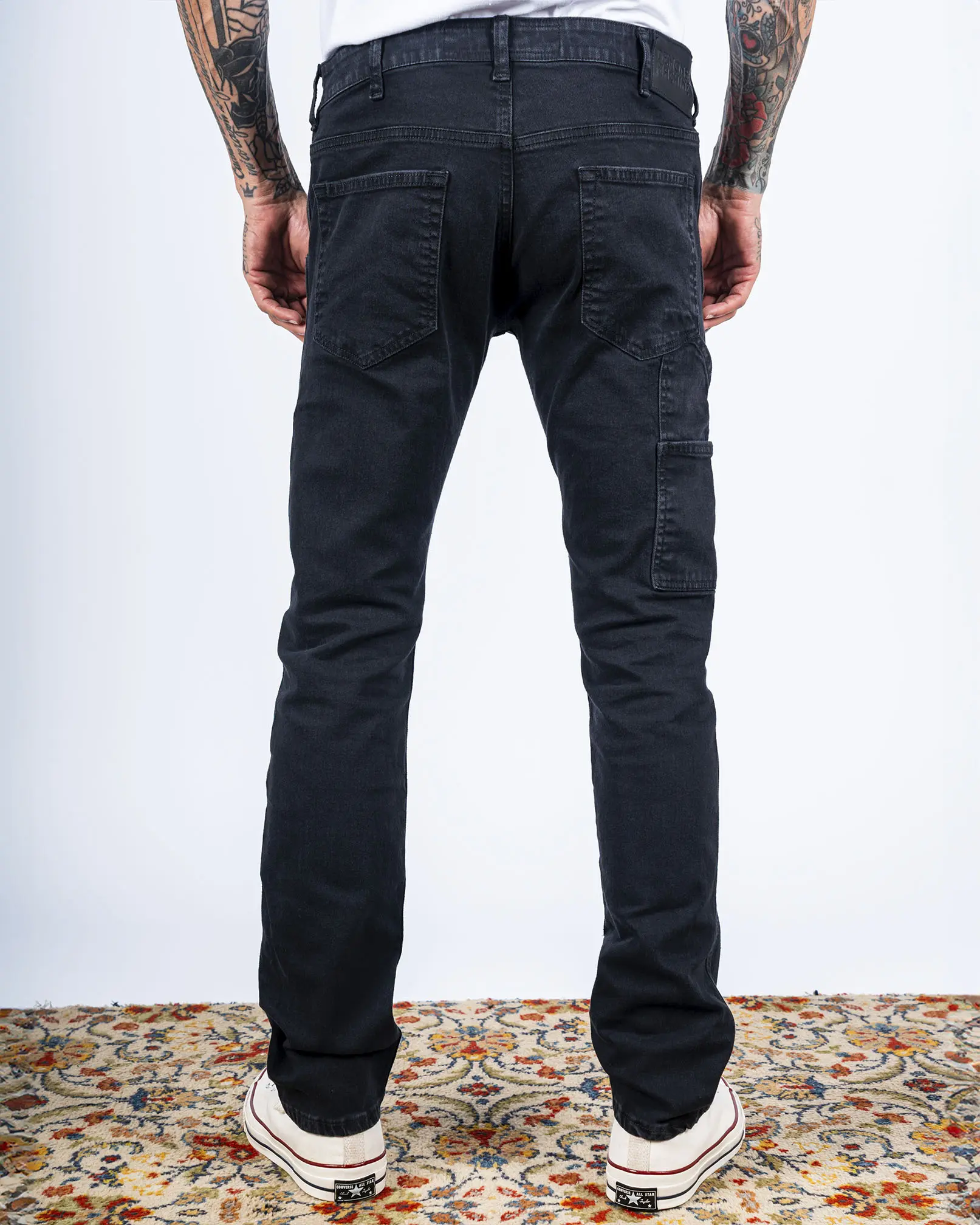 Pantalón estilo carpintero confeccionado en bull elastizado. Lavado stone. Doble bolsillo carpintero en trasero derecho.