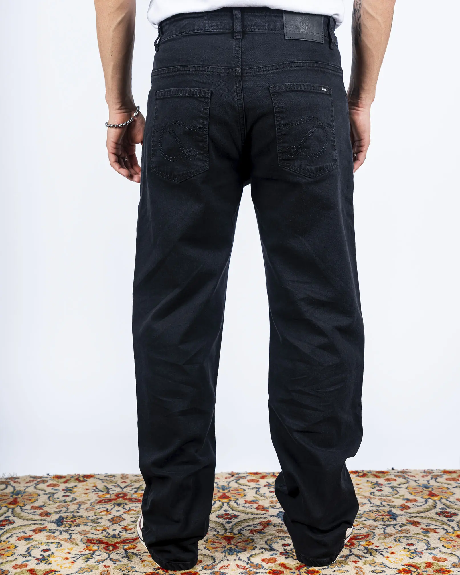 Pantalón 5 bolsillos confeccionado en bull elastizado. Lavado plain. Alegoría en bolsillos traseros con hilo al tono.