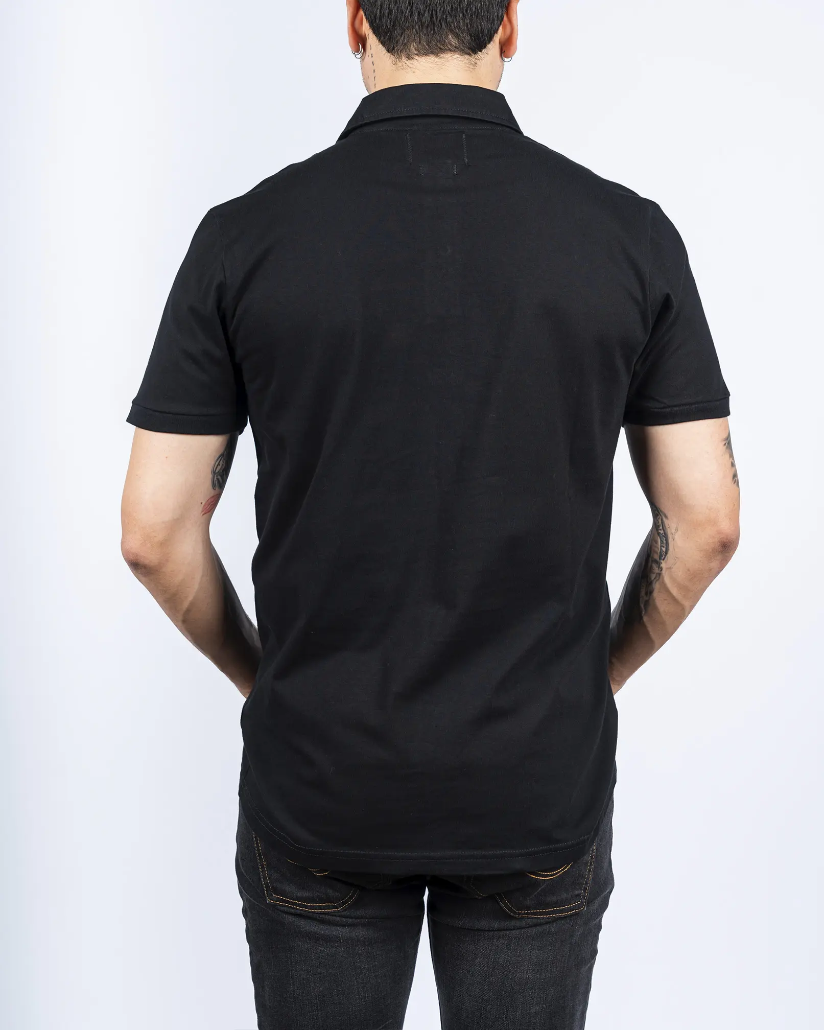 Remera polo manga corta confeccionada en jersey de algodón con puños en ribb. Bordado al frente y botones al tono.
