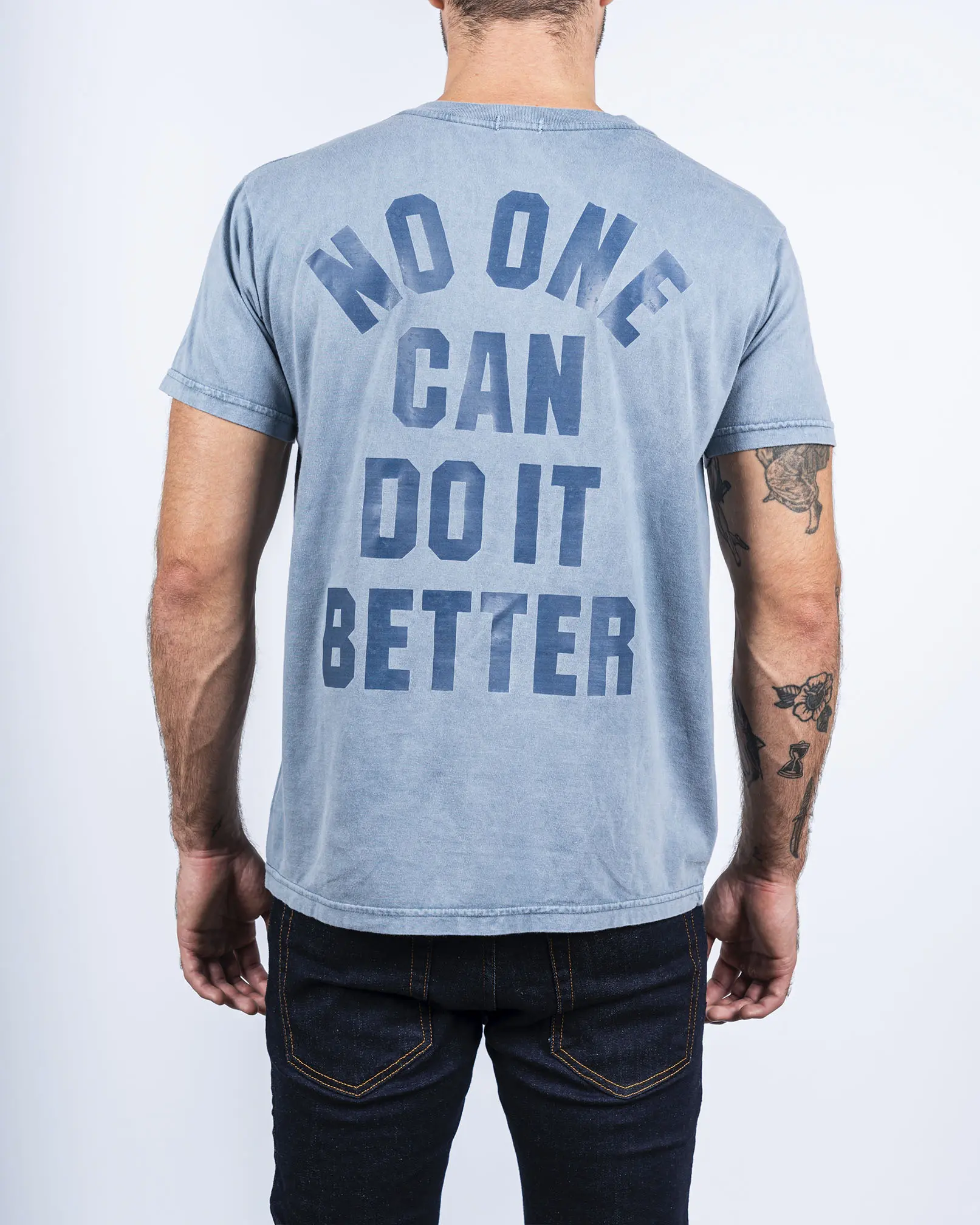 Remera confeccionada en jersey 20/1 de algodón peinado. Calce slim, manga corta y cuello en ribb. Proceso de teñido acid wash sobre prenda terminada, generando sobre la tela un look gastado imperfecto. Estampa frente y espalda con técnica DTF.
