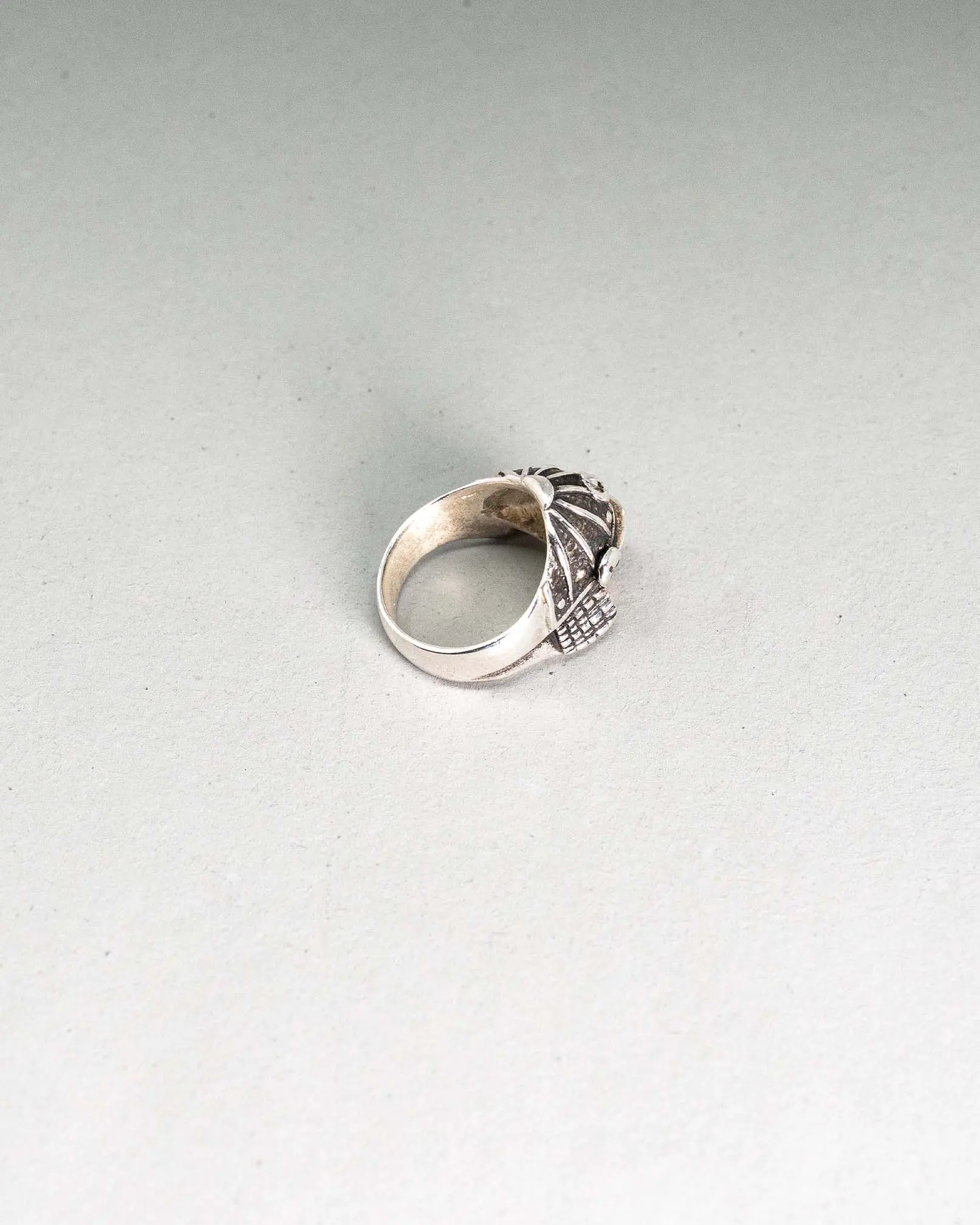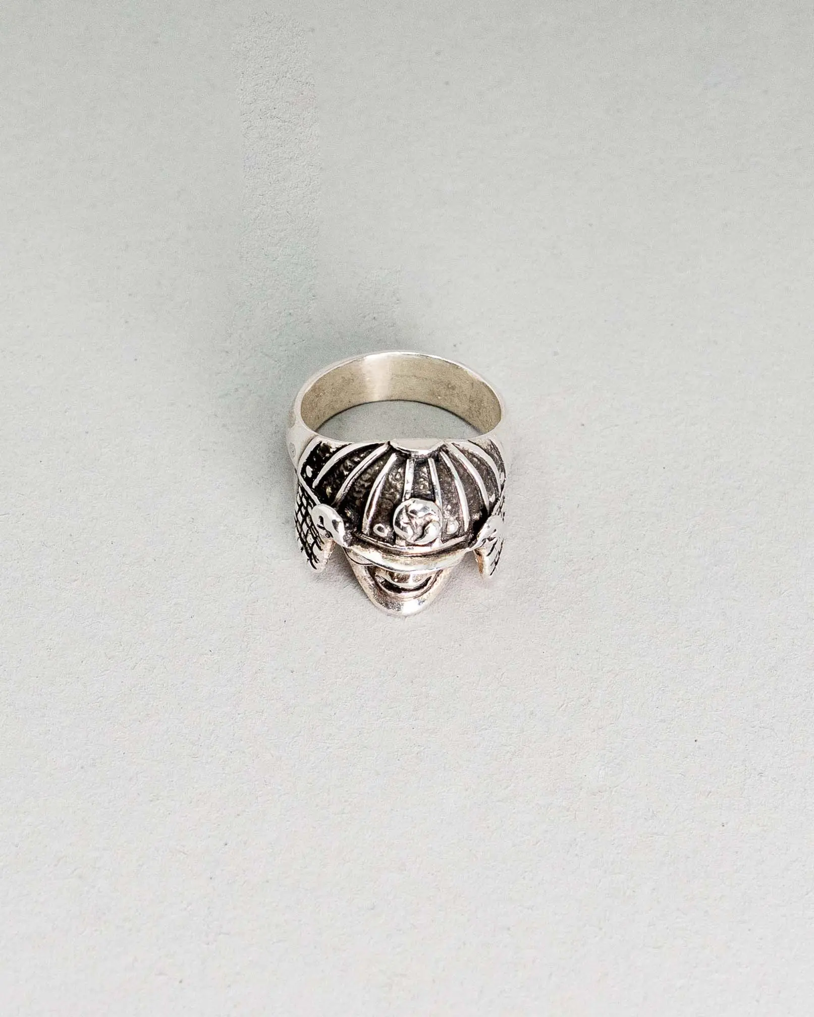 Figura tallada en cera, fundido en plata 925. Detalles cincelados y empavonados.