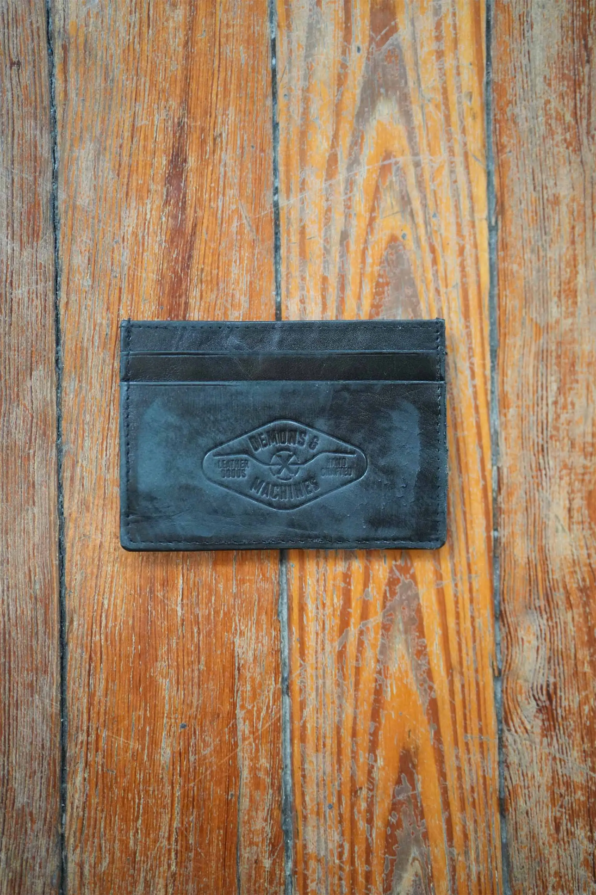 Tarjetero fabricada en cuero vacuno con proceso vintage. Tiene divisiones a la vista. Grabado de marca en bajo relieve.