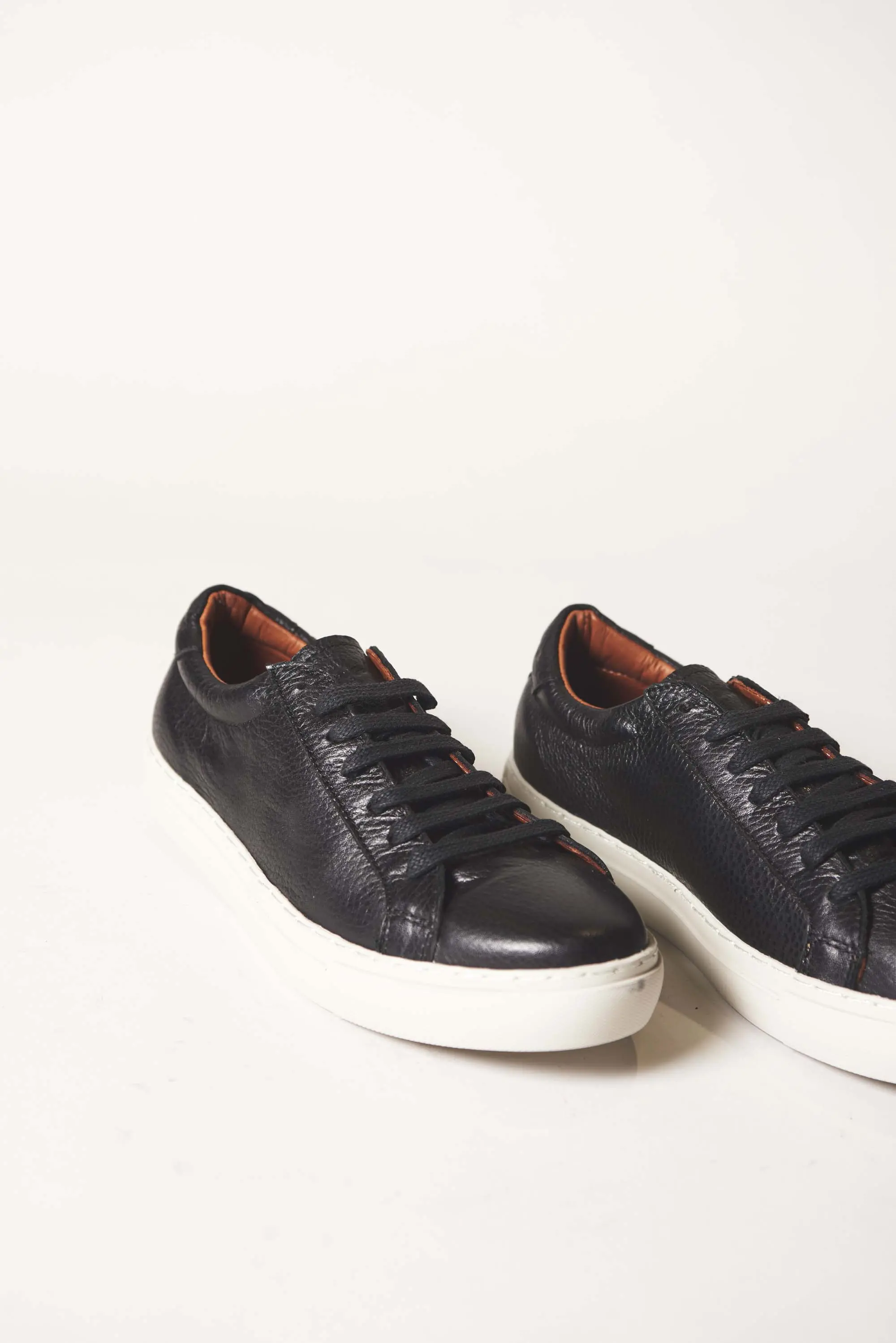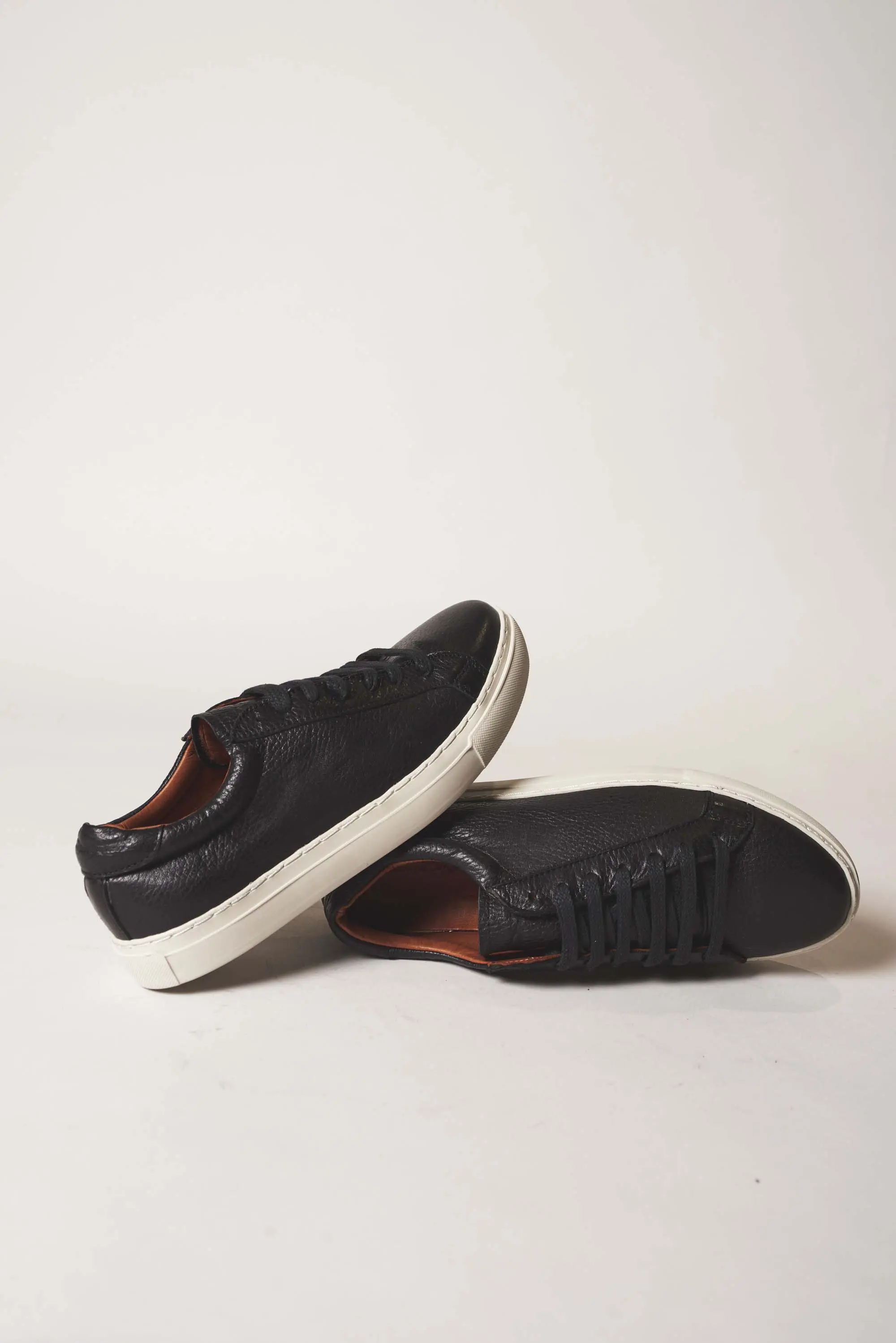 Zapatillas de caña baja en cuero vacuno con suela de caucho cosida. Cordones de algodón al tono, ojales simples con sacabocado y logo de marca grabado en bajo relieve en lengüeta y talón interno. Modelo clásico y urbano, con la altura estándar para el uso diario. Las variaciones de tono y textura del cuero son esperables en este tipo de material y reflejan la autenticidad y durabilidad del mismo.